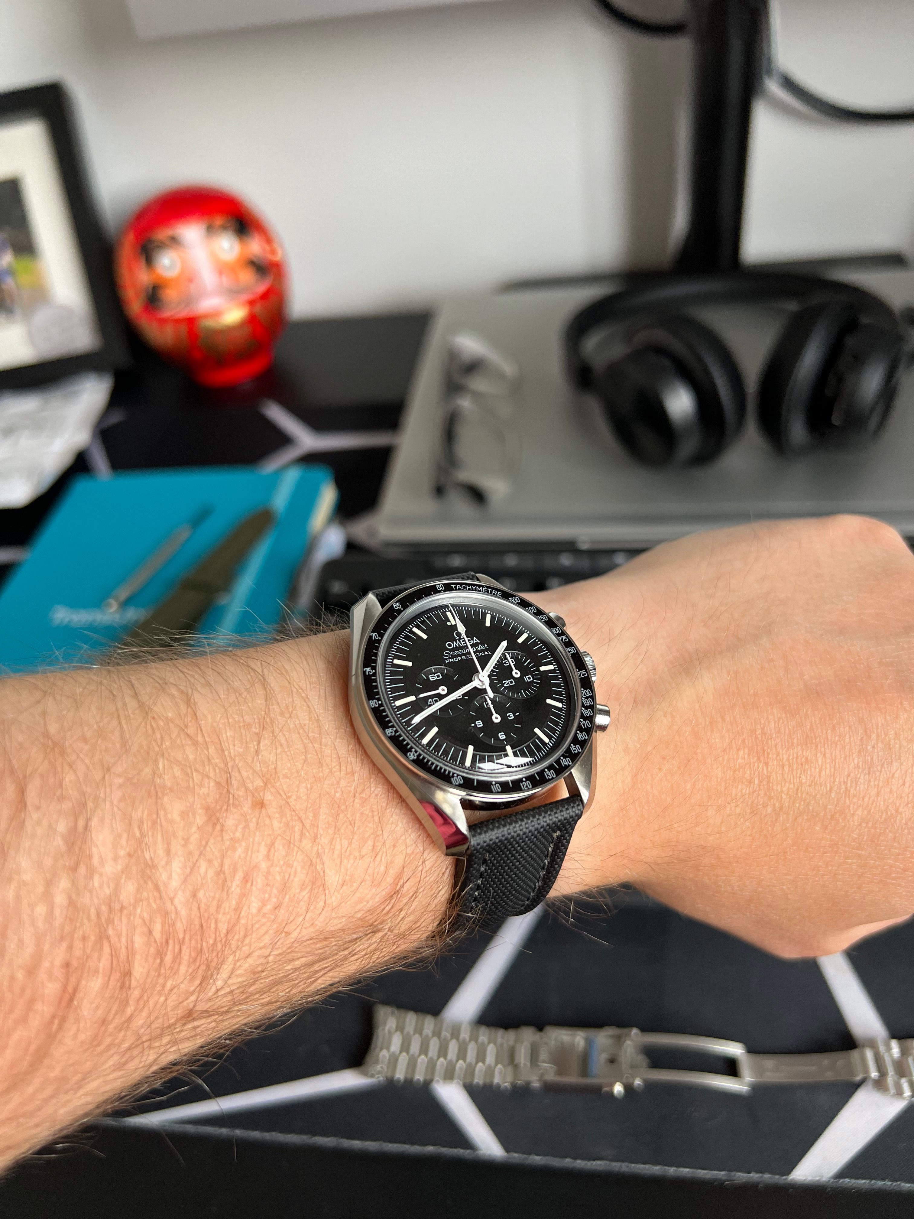 I bought a black and green sailcloth recently as a just to have - it’s unlikely my speedy will ever be off its bracelet. I picked up two straps from Etsy. I looked at reviews of Artem etc but I just didn’t want to spend that kind of money on something which will barely get any wrist time.
