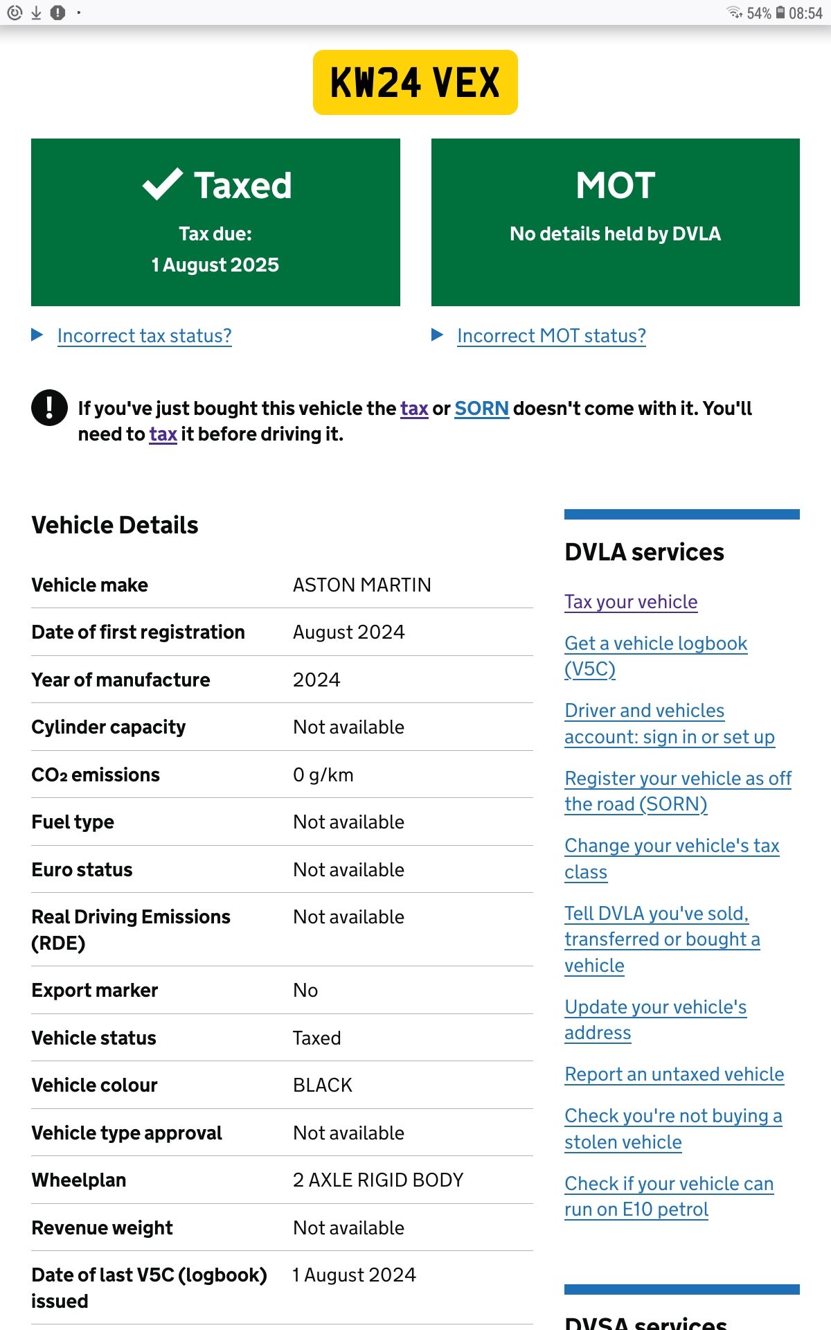 Motor manufacturers appear to have an agreement with the DVLA, whereby many technical details are redacted with 'Not available' for prototype vehicles.