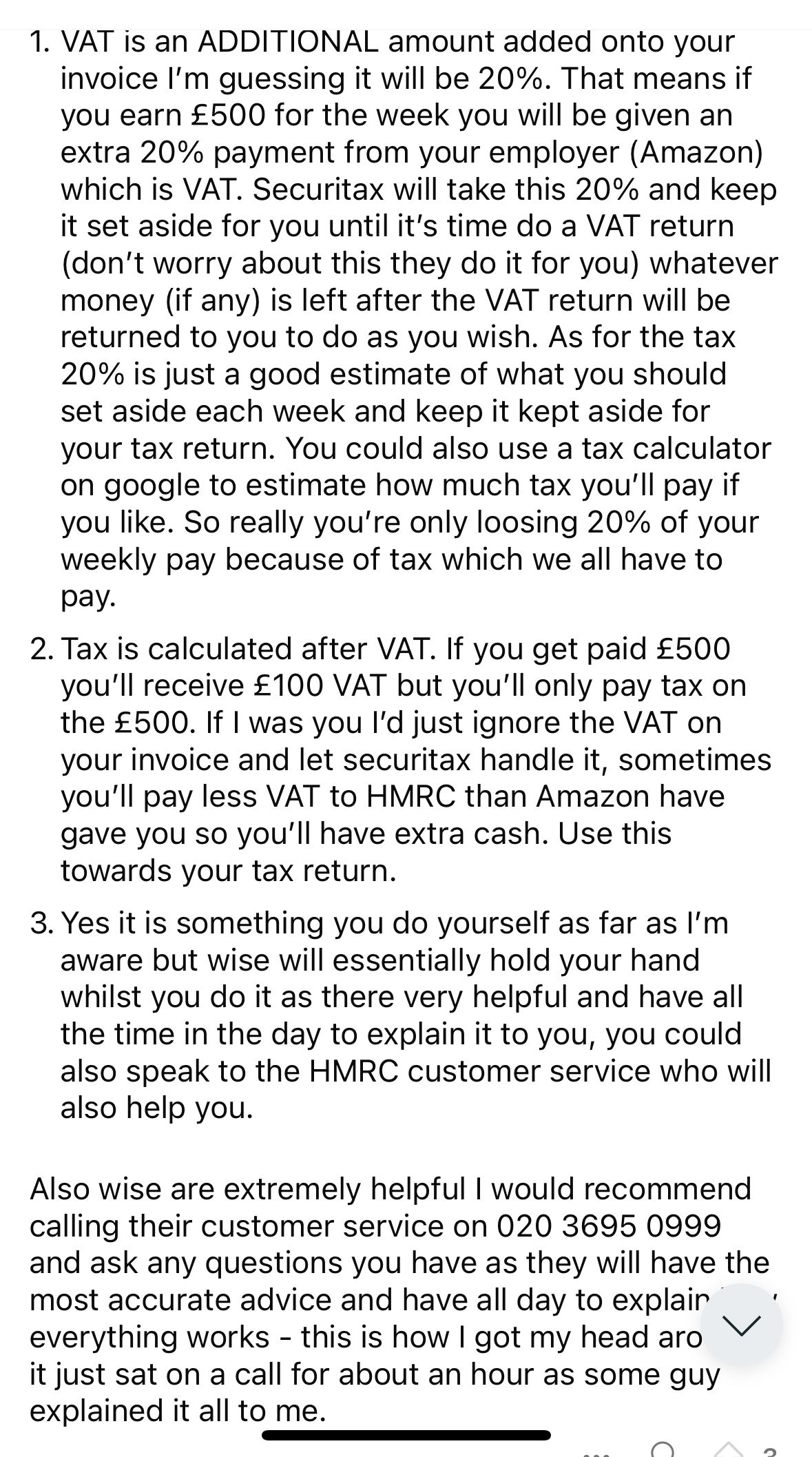 I need to know what the VAT rate is if you are just a driver for Amazon, as in driving their Prime vans doing deliveries.