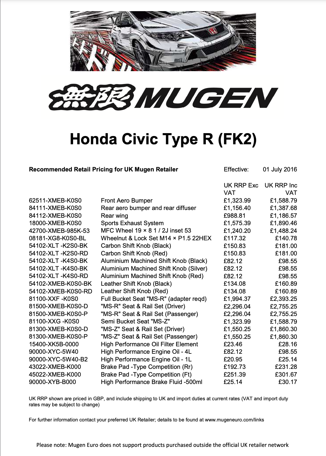 Here’s the price list for Mugen’s options back in 2016.
