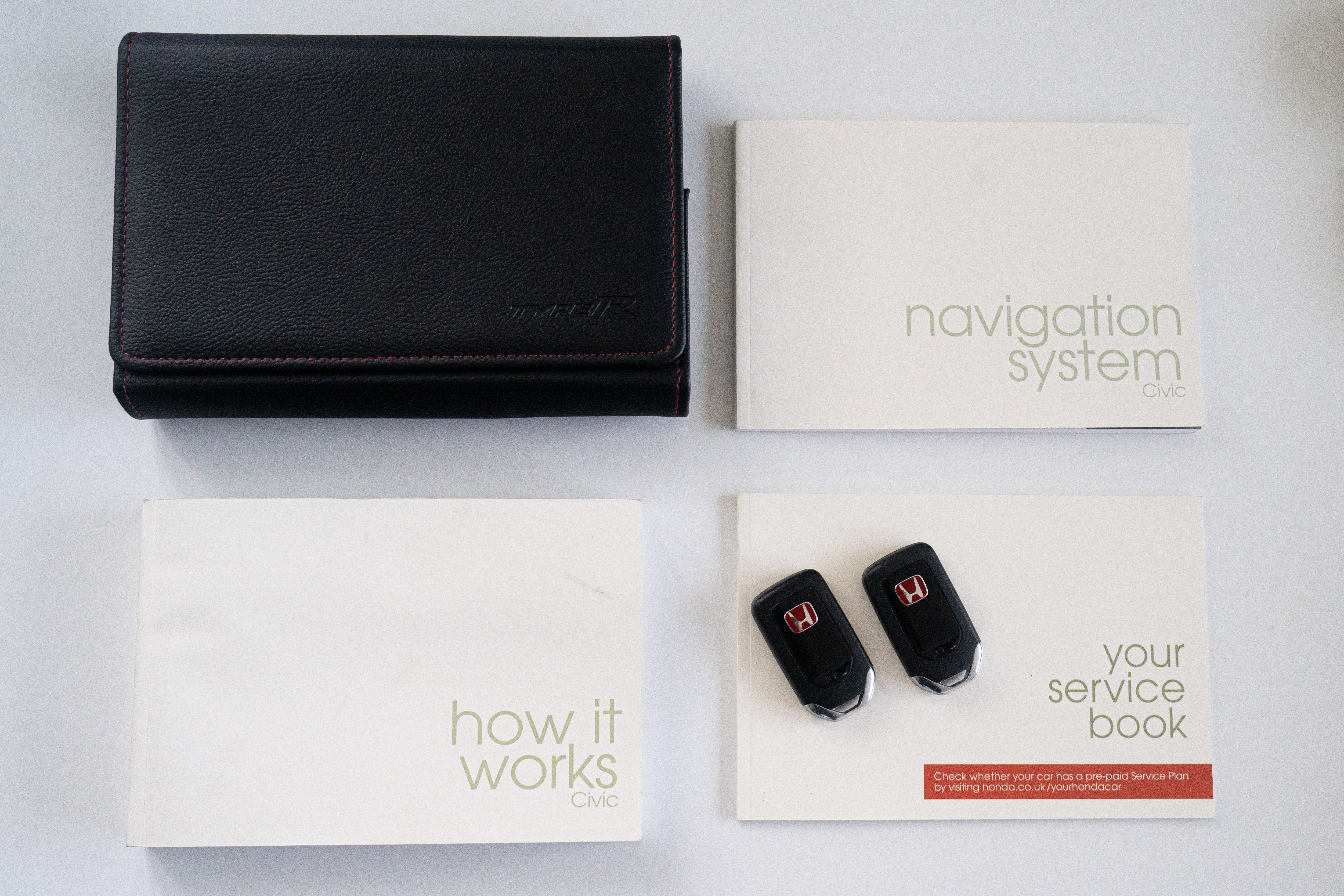 Original handbook holder, owner’s manual, navigation system supplement, and service book included