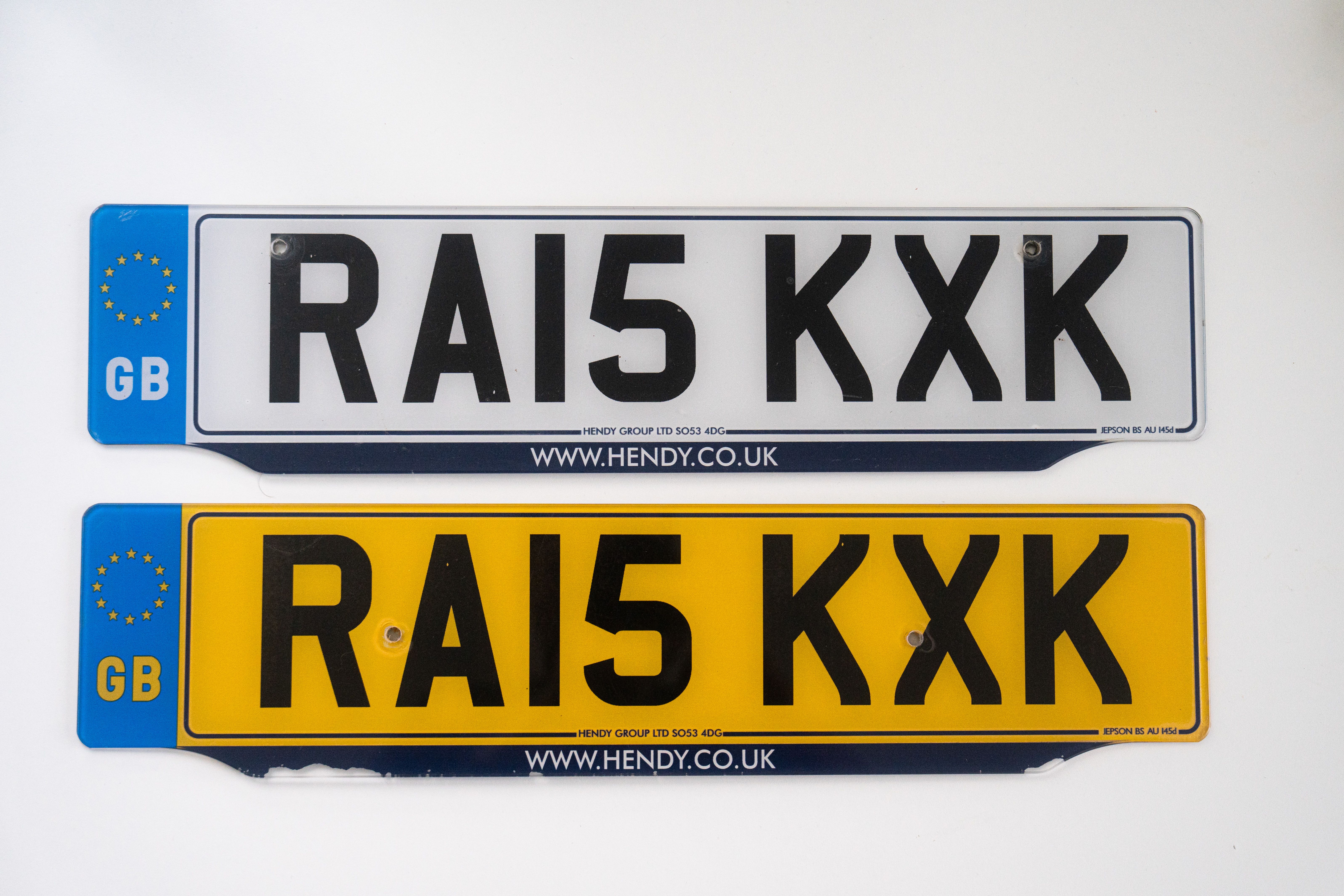 Old set of UK-format rectangular number plates