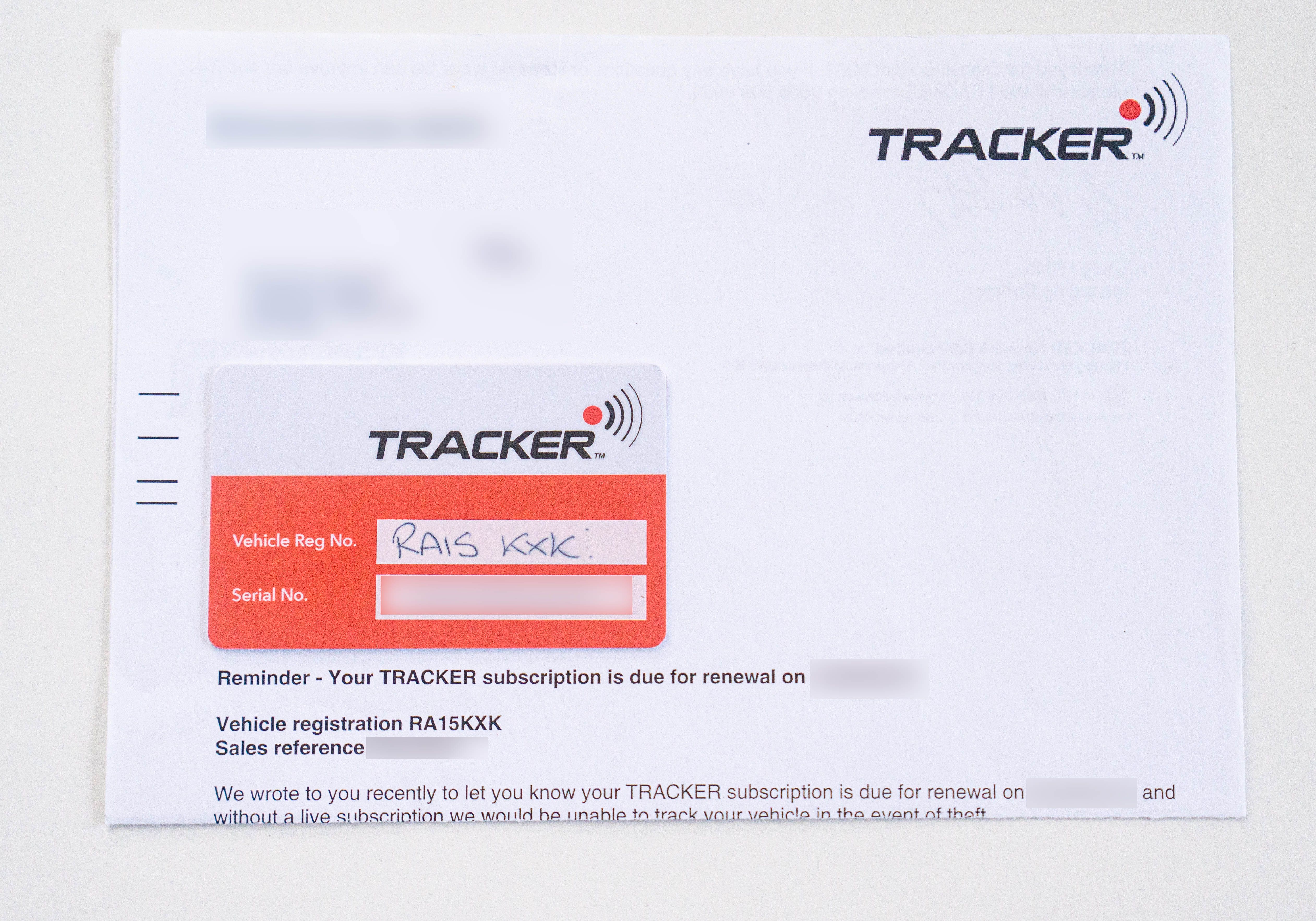 Tracker system installed, with the option for the new owner to subscribe to the service as desired