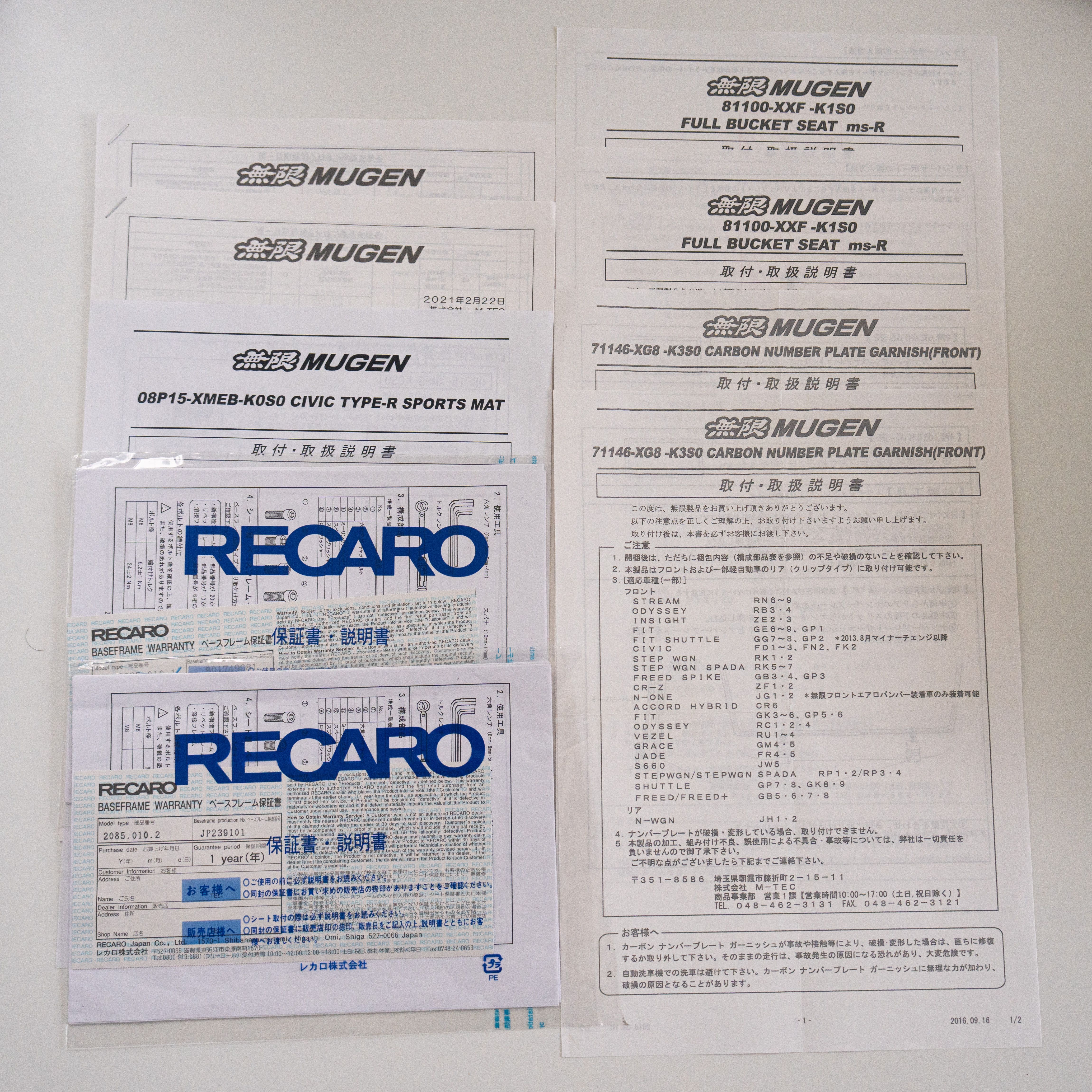 Some parts are not on the list, like the Mugen Sports Mat, Mugen Plate Bolt, and Mugen Carbon Number Plate Garnish.