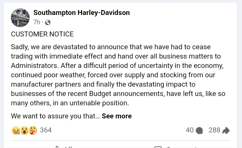 Fourth and Fifth lines of their statement, seems to be the same issues impacting on all motorcycle dealers in the UK:Are people finally realising 30k for 60hp isn't a good deal?
