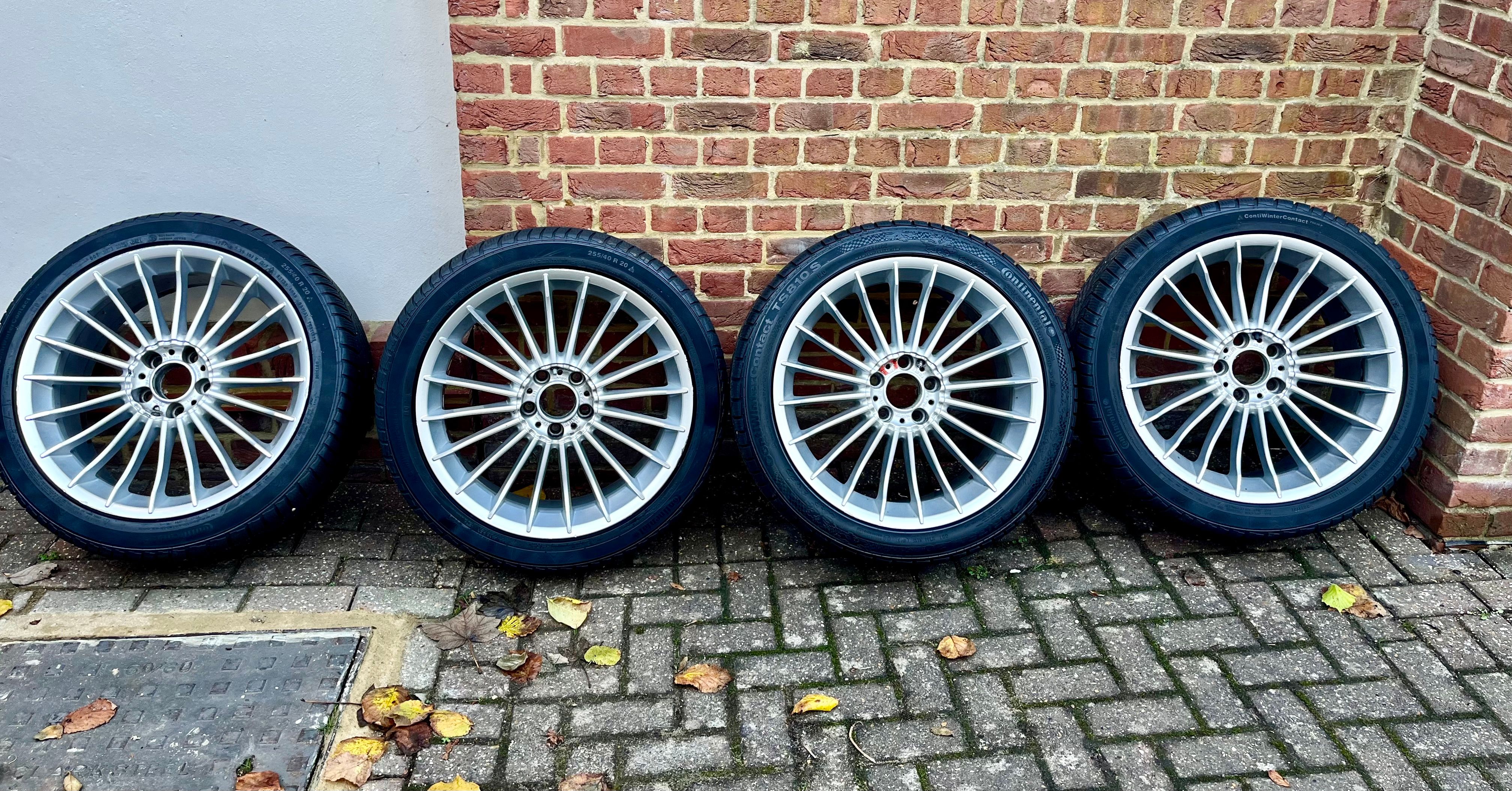 Selling my set of original Alpina winter wheels. Mounted with barely used Continental WinterContact tyres. Wheel sizes are 8.5Jx20 (front) and 9.5Jx20 (rear). Tyres are Alpina OEM spec (extra load 104V rated) - sizes 255/40R20 (front) and 285/35R20 (rear). More photos available. Located in London. Please message me here if interested. Asking £2000 for the lot.