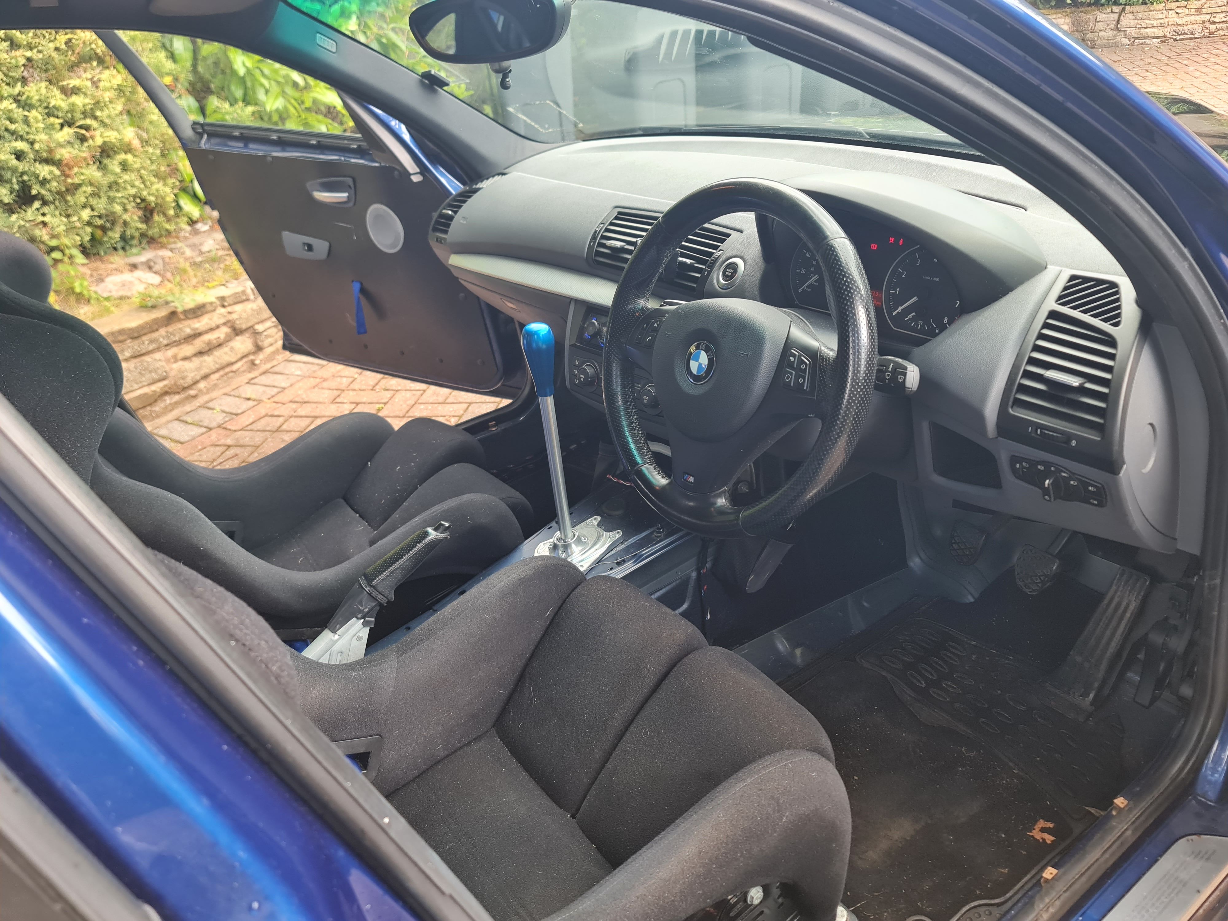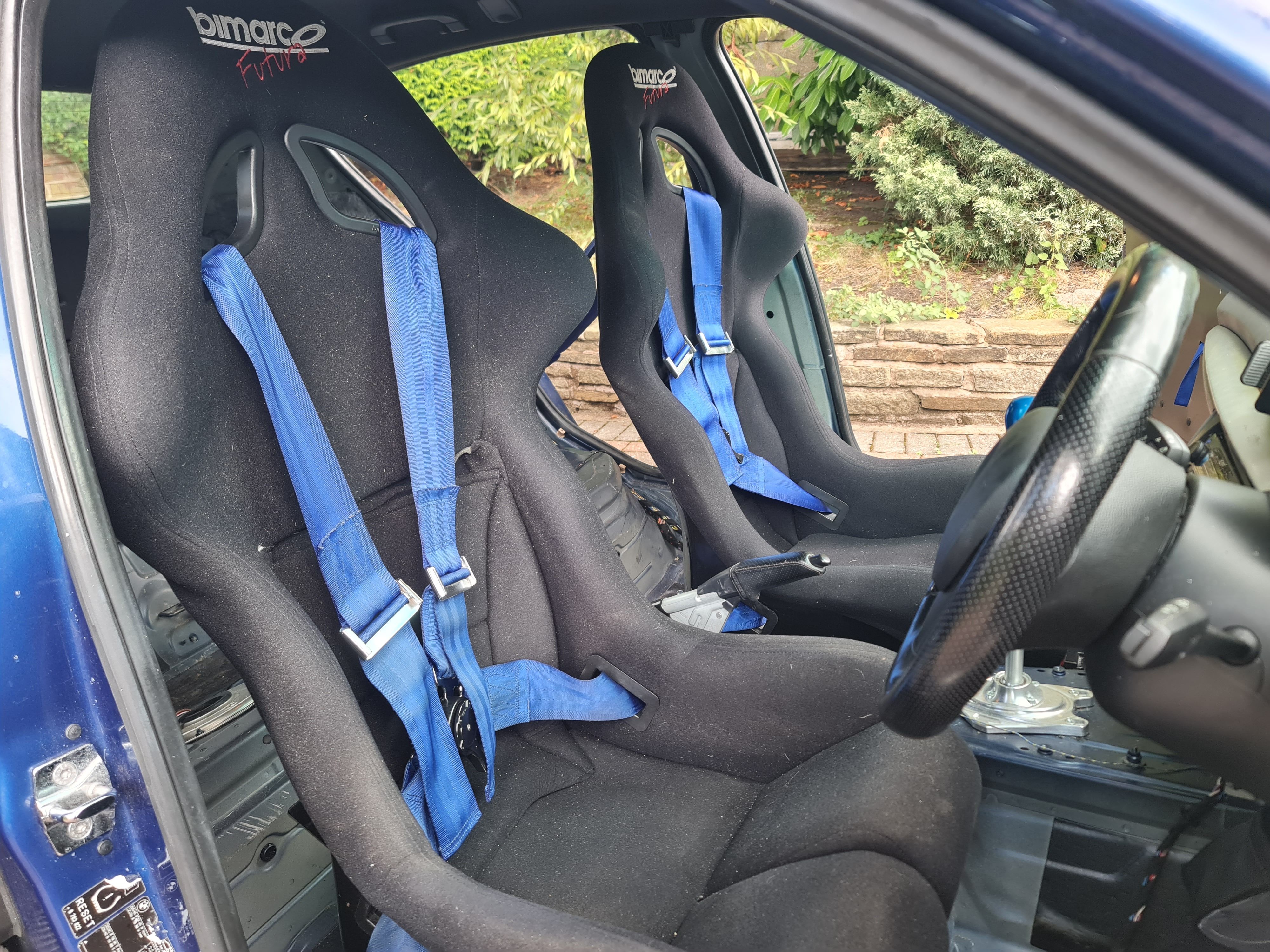 In order to improve the car I've reduced weight by approx 110kg by stripping out the interior, using bucket seats, harnesses, door cards, a GRP bonnet with catches and lighter wheels.