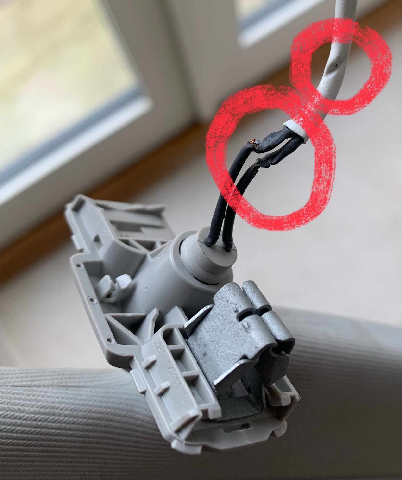 The wiring to the front left sun visor had been damaged, presumably shorting to the body.