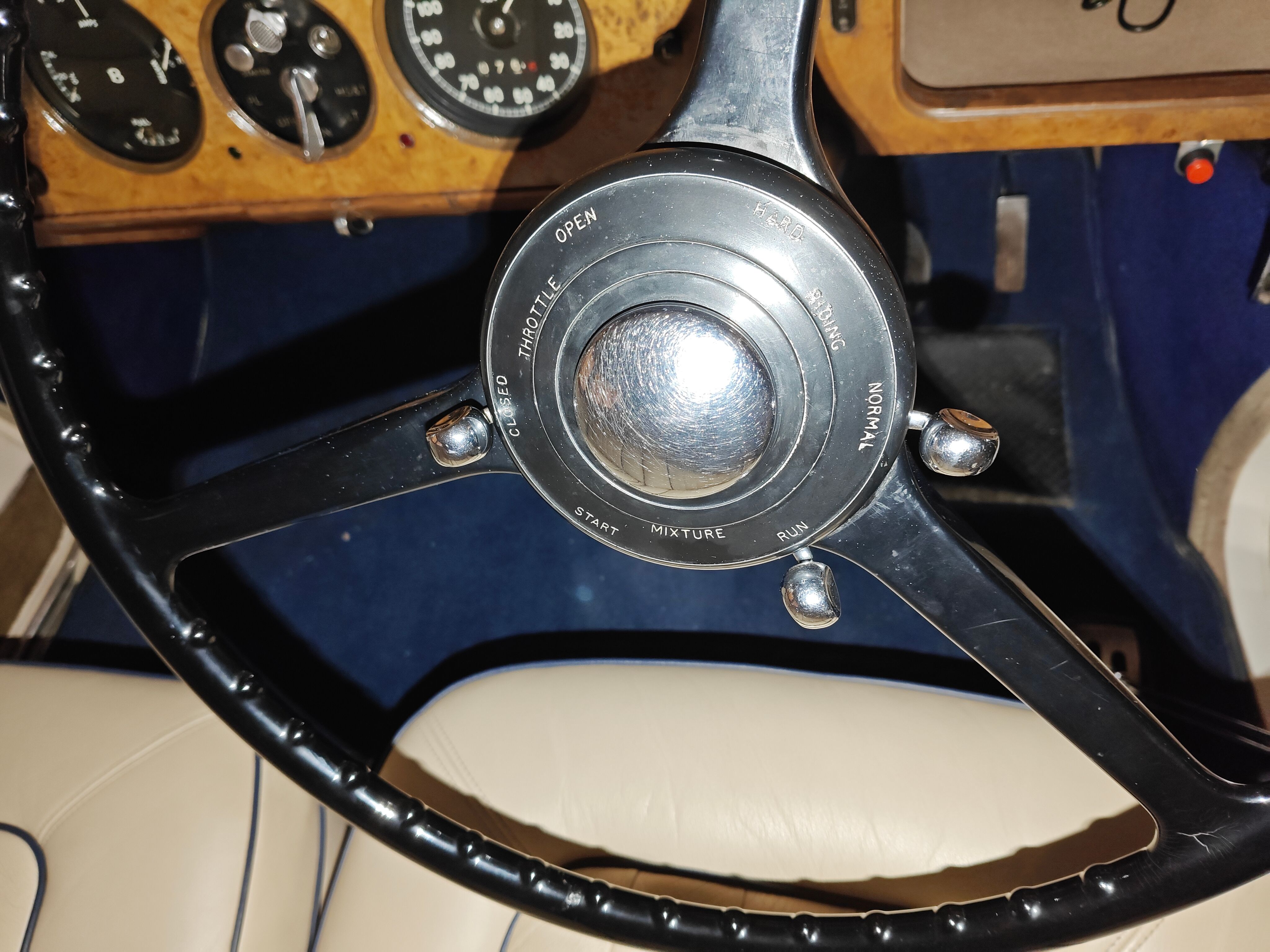 You will also see that there are controls on the steering wheel. These drive concentric tubes down the middle of the steering column, then through the very centre runs the horn wire.