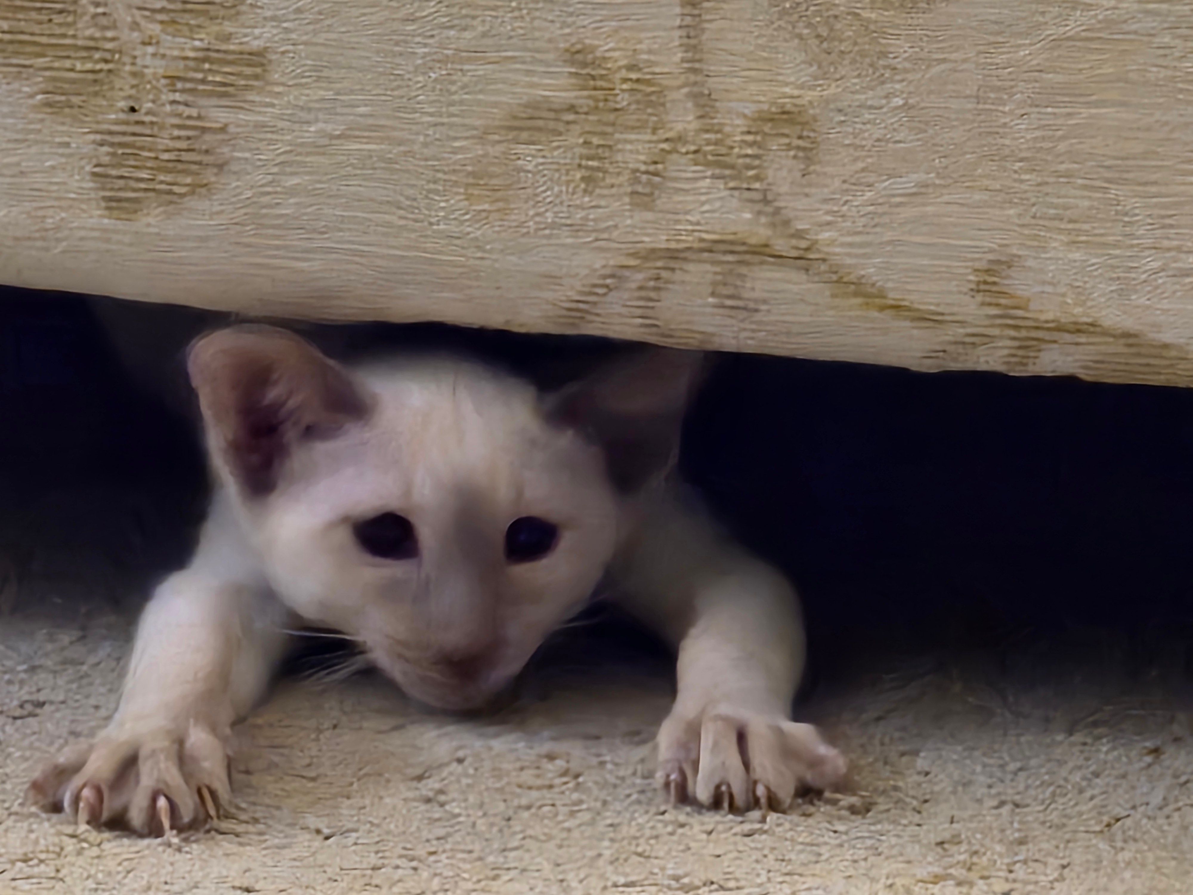 My first experience of a kitten and first experience of a Siamese. She is very engaging. When meeting someone new, she goes over chats and stares them right in the eye. Surprisingly confident and more so than I would have thought for 12 weeks old.