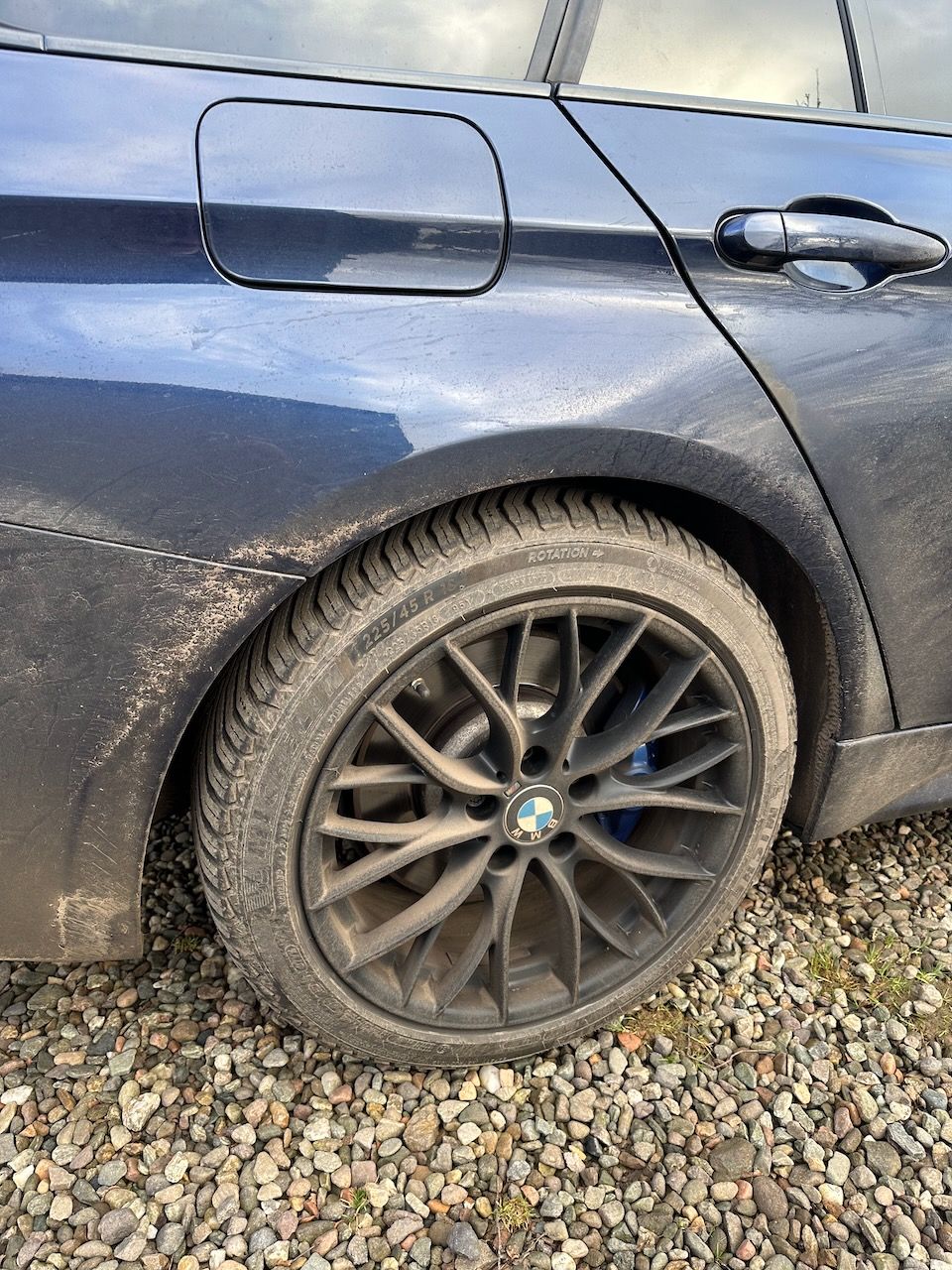 They're on satin black 397s as the winter wheels (18x8 again, 235/45/18 all round)