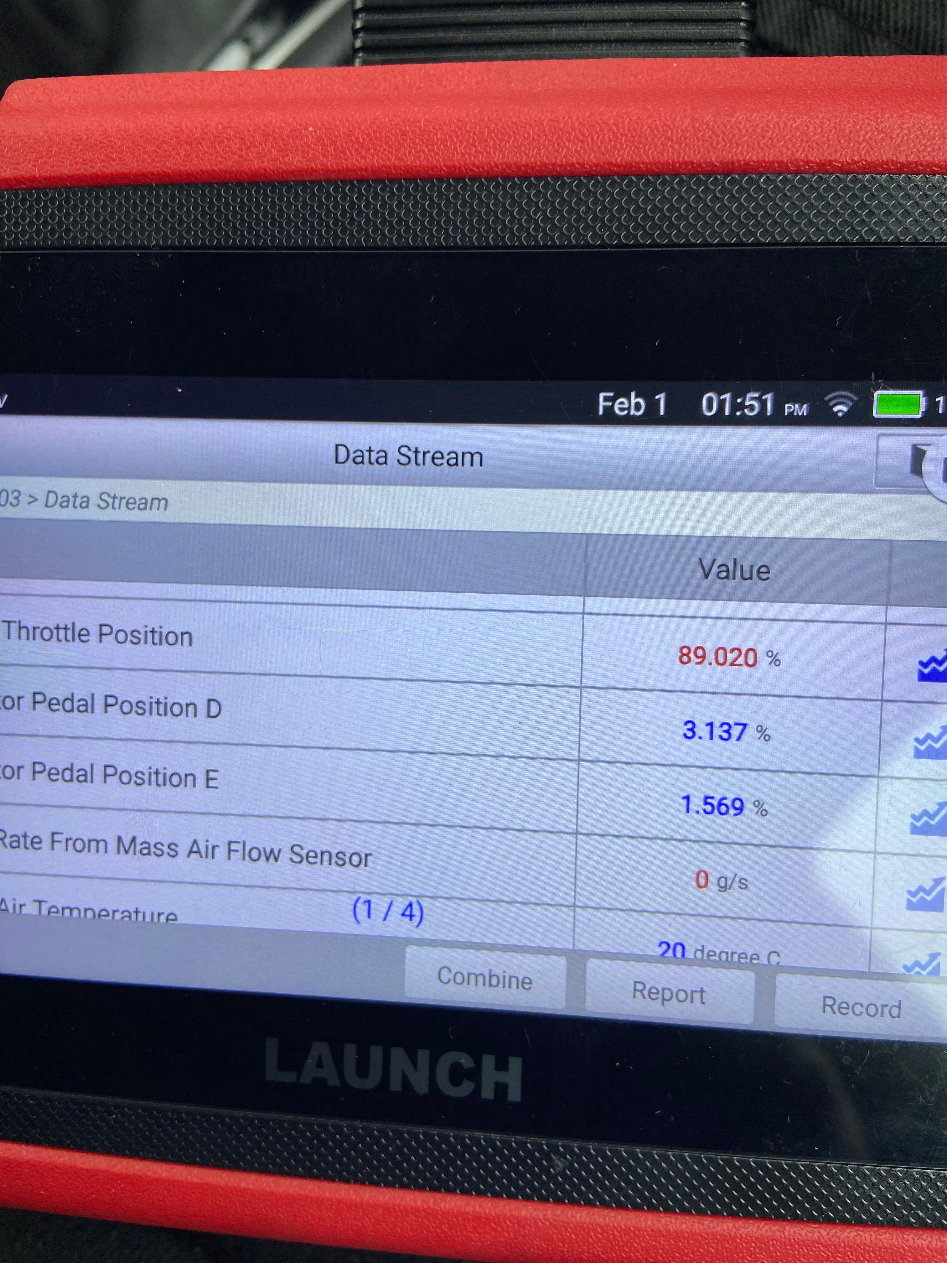Yes done that. Recorded the data on a drive, and it looks to me like the throttle position is in some kind of default.