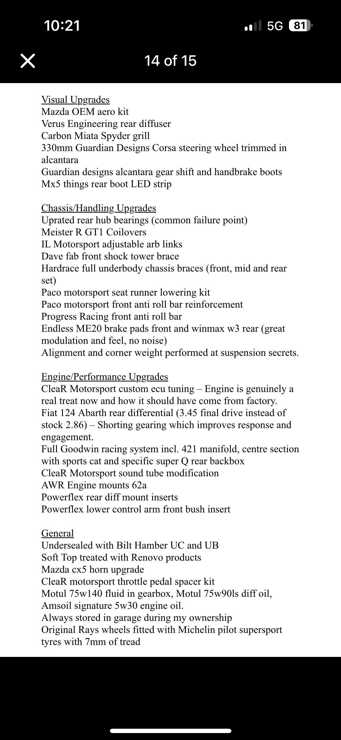 I’ve got my deposit down for this BBR stage 2 ND coming from an Alpine A110. Someone on a FB group though has recently put up this car with 50k miles and basically my dream list of mods on it. The only thing missing would be the power of the supercharger. The BBR is 23k and I think I could get the anniversary for about 19k. Linked the BBR and spec of the other car.