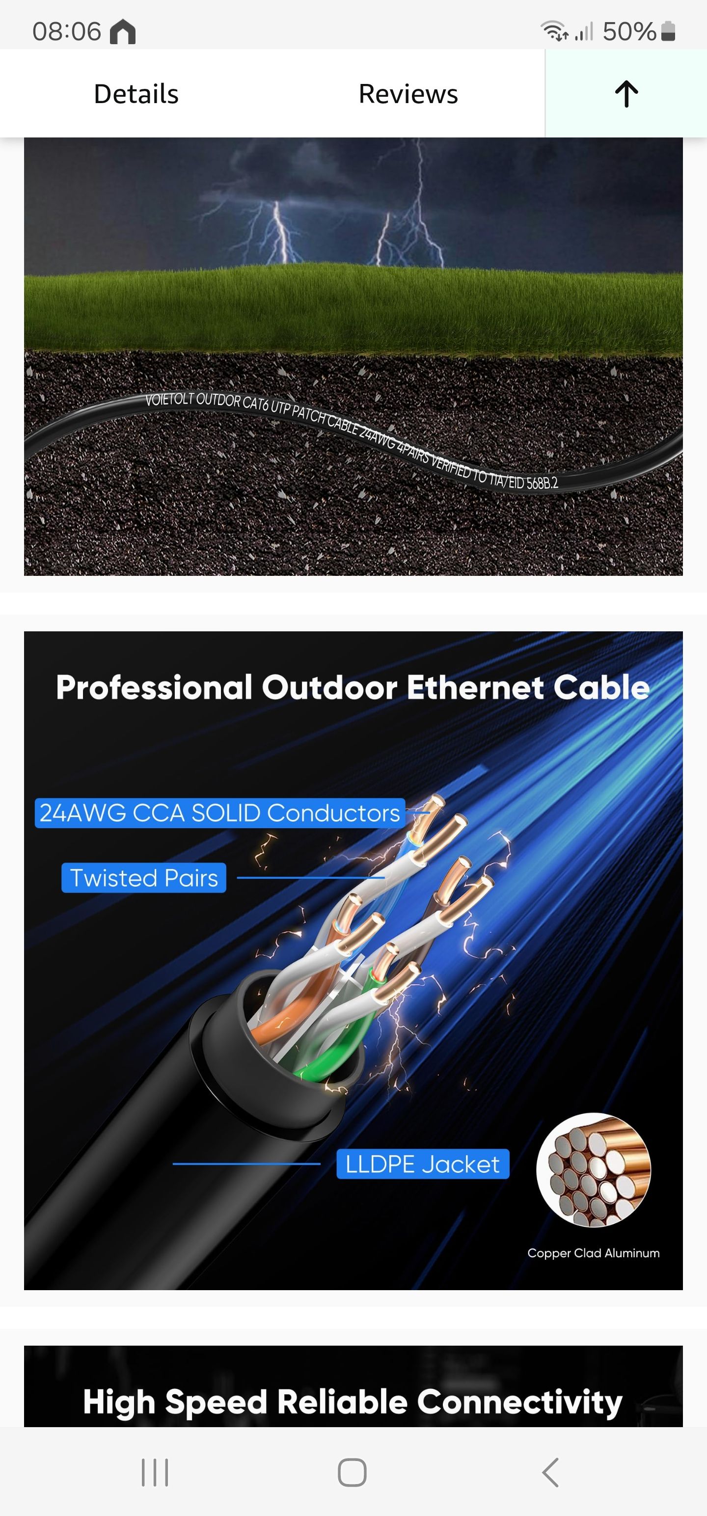 100m exteior cat 6 cable into the BT box / Router