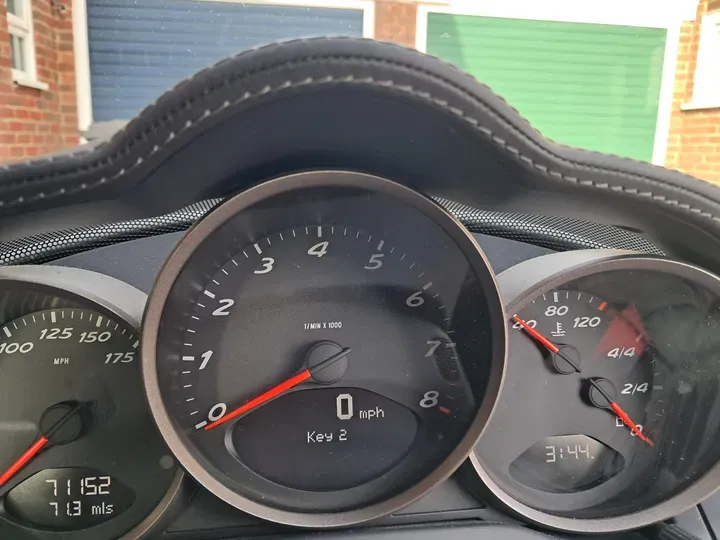 Here we see a photo of CanAm’s Cayman/Boxster and its slapdash rev counter, showing MINUS revs!