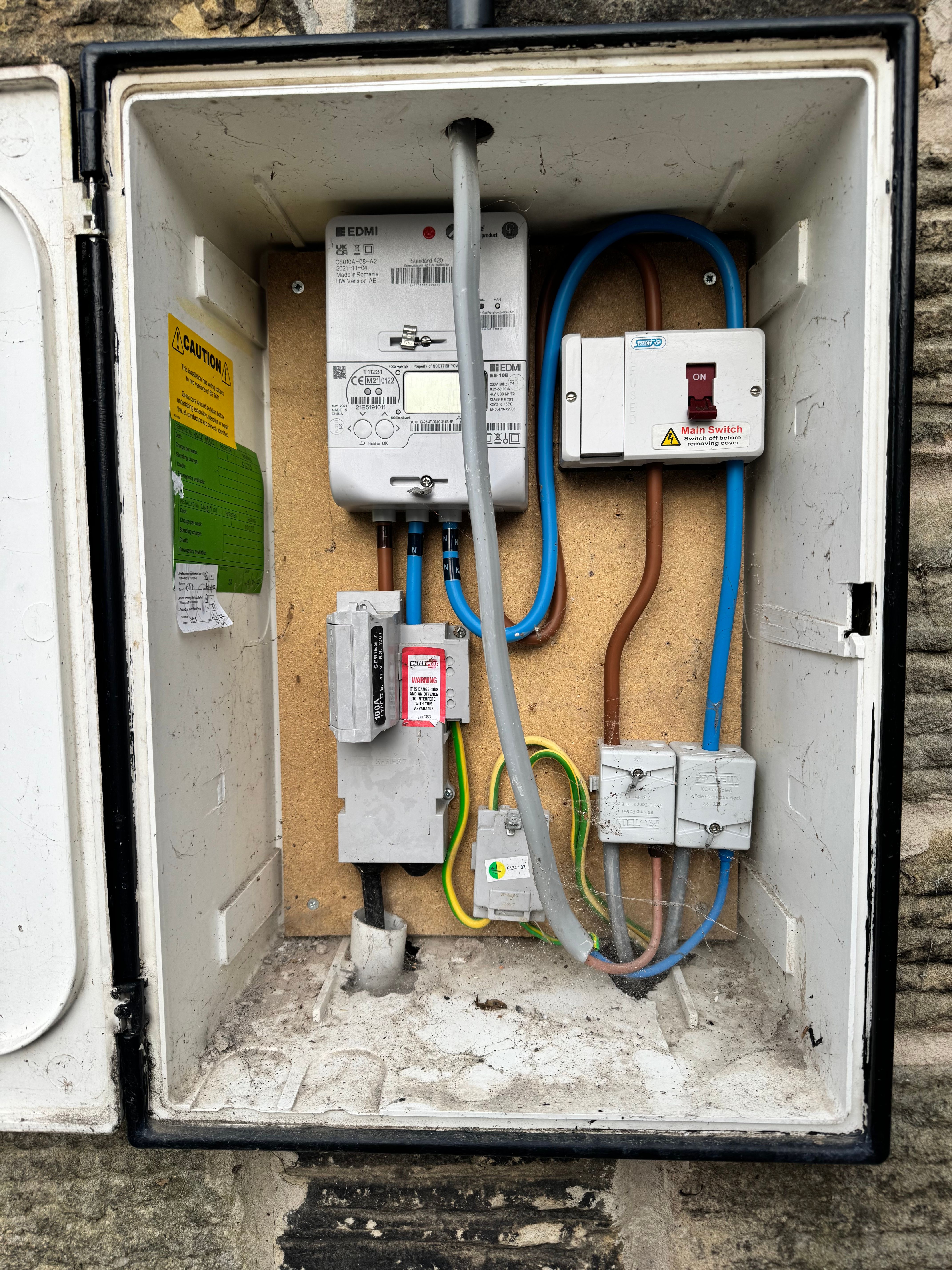 He installed this meter box and the two consumer units running off it so he’s familiar with the layout.