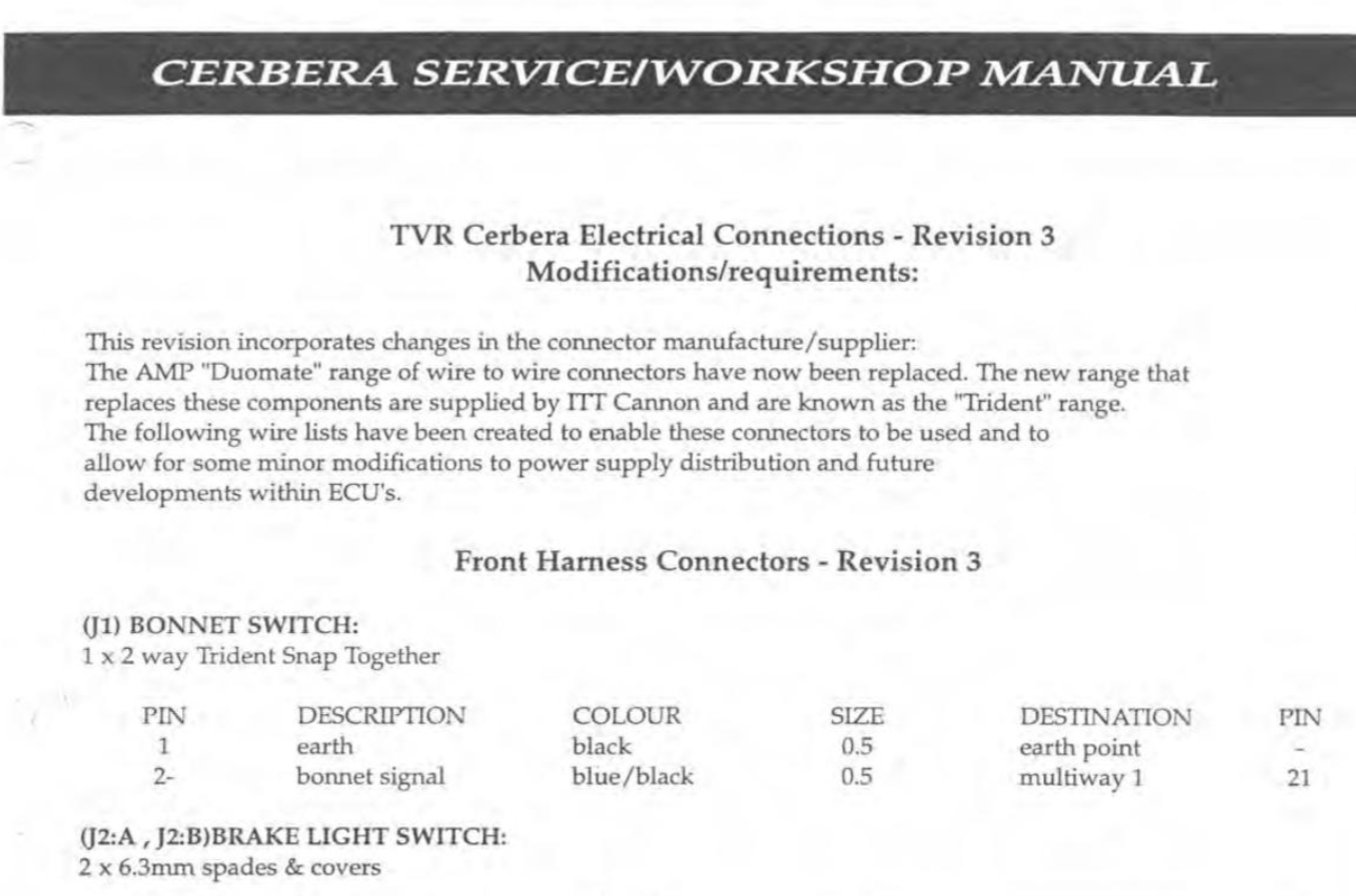Weirdly the rear harness wiring diagram and the Cerbera Service Workshop Manual are showing that the boot / bonnet sensor is on Pin 3 of the alarm ECU and connects to the front harness via a Blue / Black wire that connects to the bonnet sensor in the front - totally confusing!