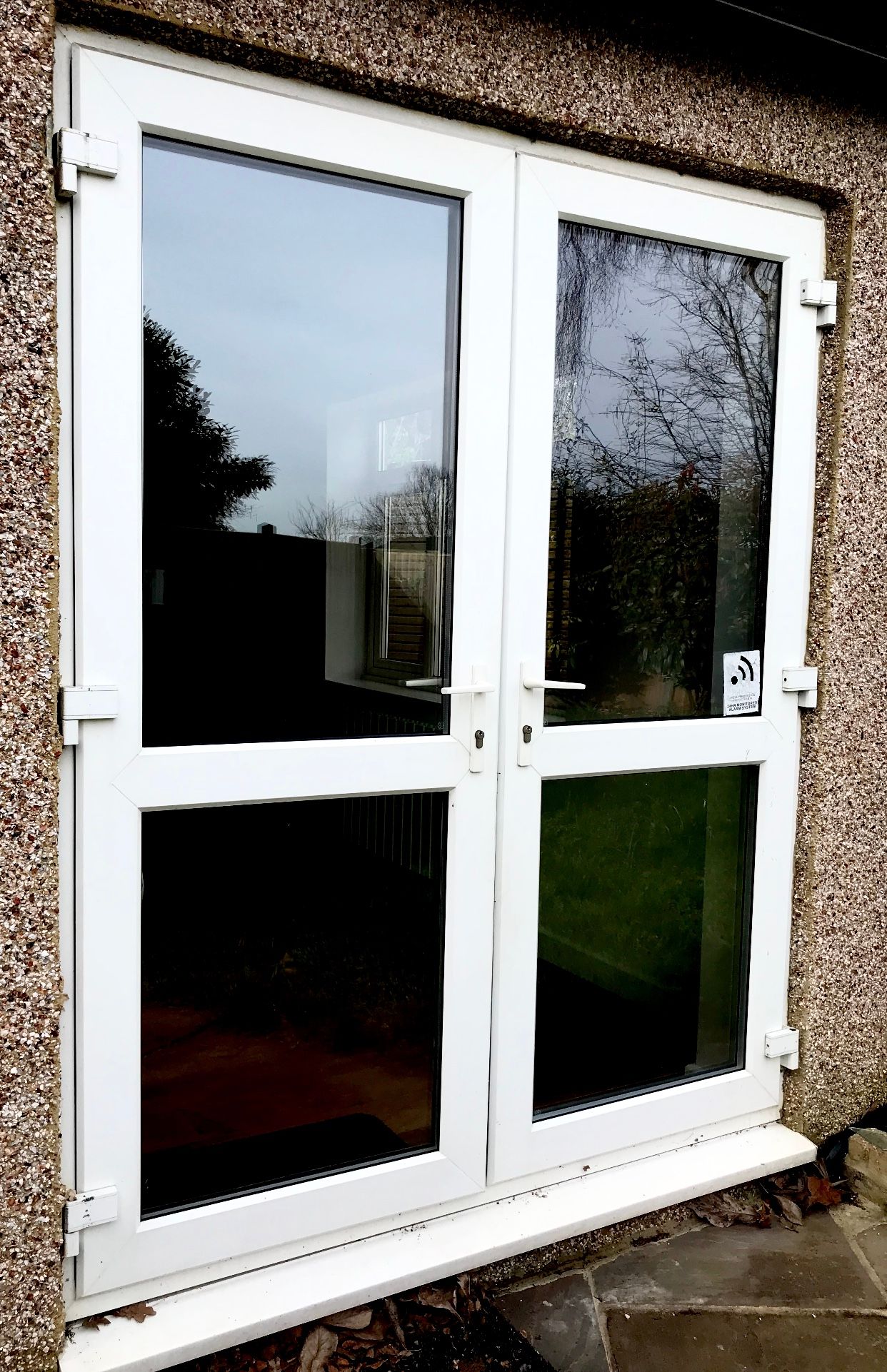 Yeah, double french doors with a full glazed area of 58cm by 176cm. I thought they’d be heavy buy did think I’d at least be able to get them to move a bit on the hinge if they are loosely hung (rather than attached). Maybe they are just WAY heavier than I was expecting or I’m just extremely weak biglaugh.