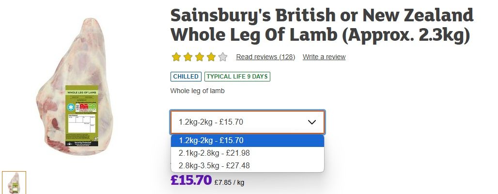 Sainsbury's sell meat in different weight categories. which I will call small. medium and large
