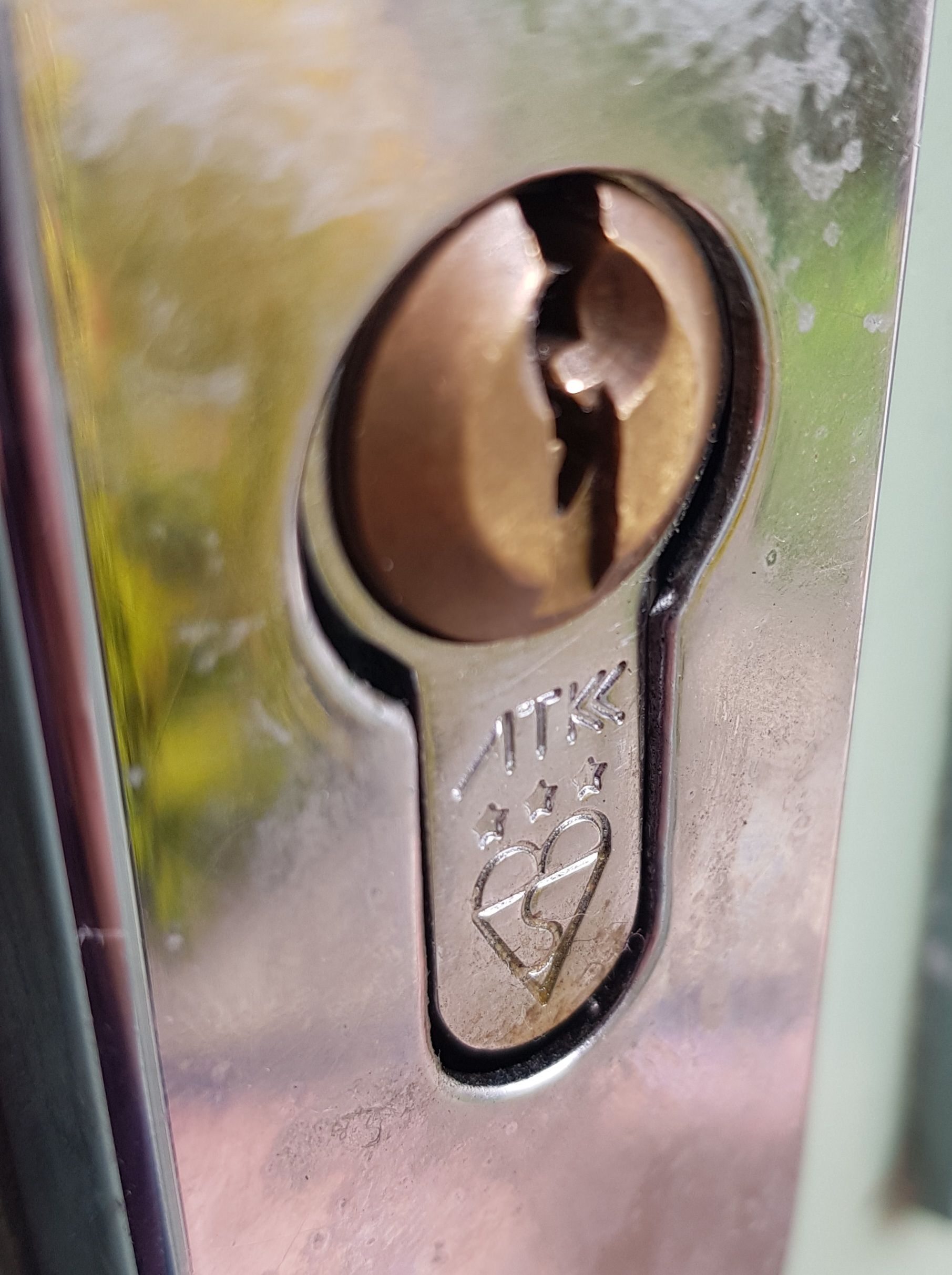 A couple of days ago, it appeared to have moved about 2mm, so there's more of it poking out on the inside face. It's also a bit stiffer to turn the key.