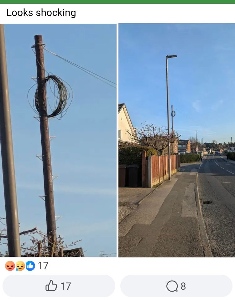 Evening all, in the local area, much to anger and frustration of local residents Giggle fibre have been installing telegraph poles to provide Fibre to residents.