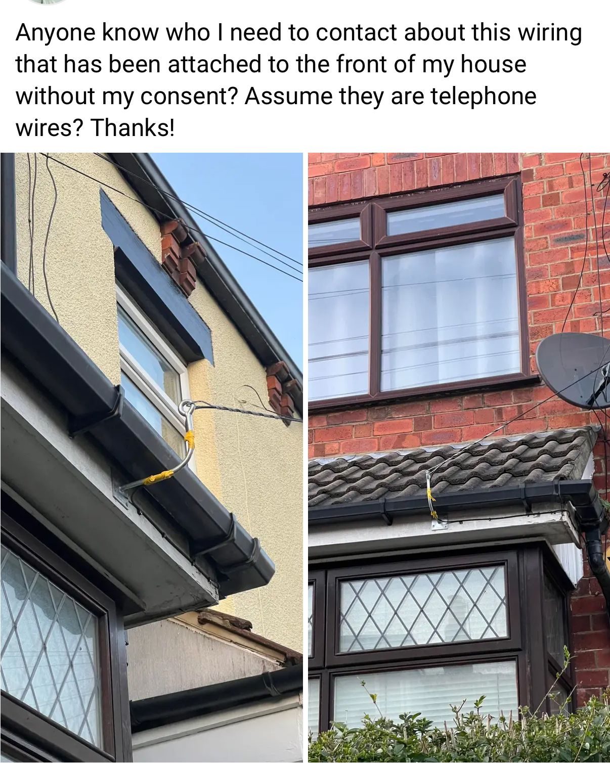Installing to houses - they might do this because a house in a terrace wants fibre and the line needs to go from the pole to an end property first then across to the next .. as I understand, they cannot do this without that property’s express permission and you can threaten to charge them / county court claim until they do something about it. (assuming you don’t want fibre, of course!)
