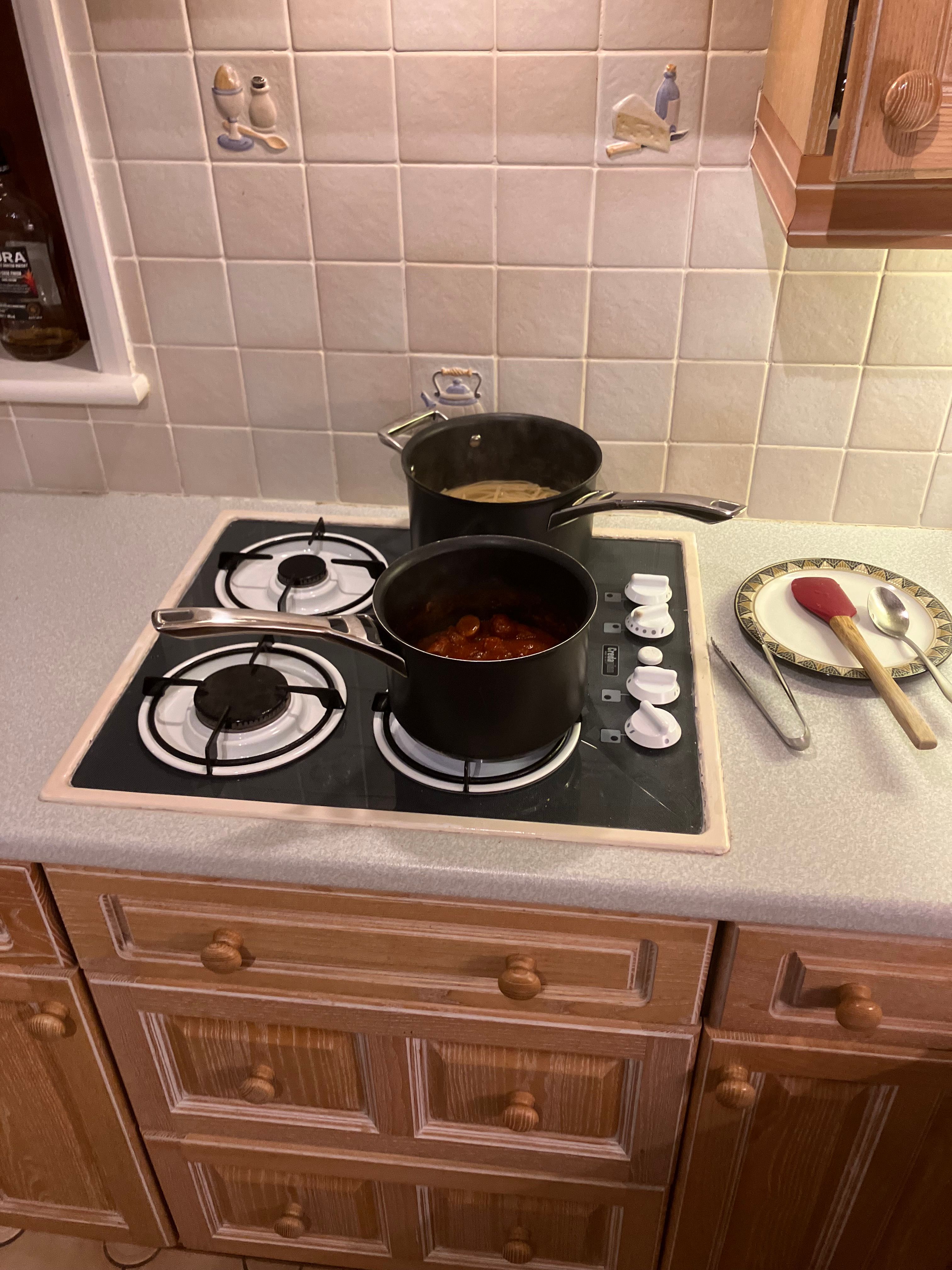 It’s not under the hob. I was just showing you my lovely tiles!