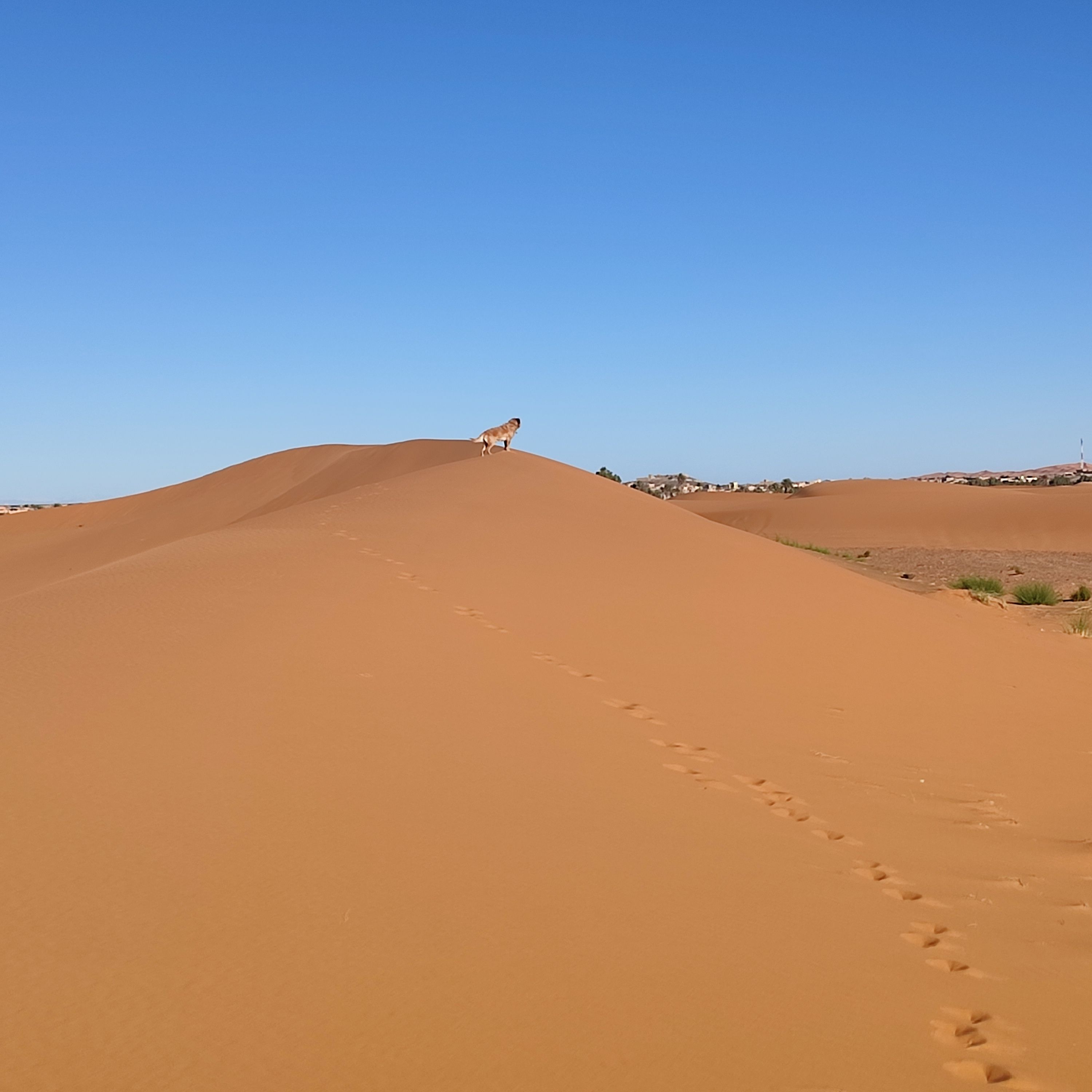 Here's the dog in the desert near Merzouga in Morocco.