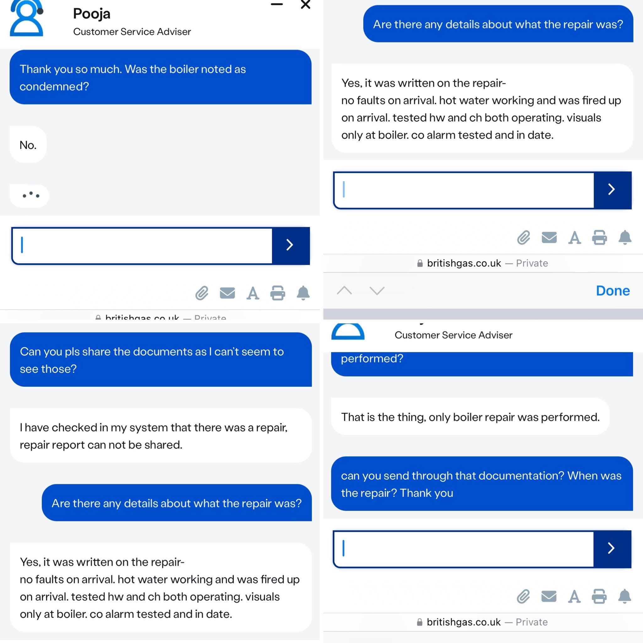 You've the chat record from BG stating the boiler wasnt condemned.