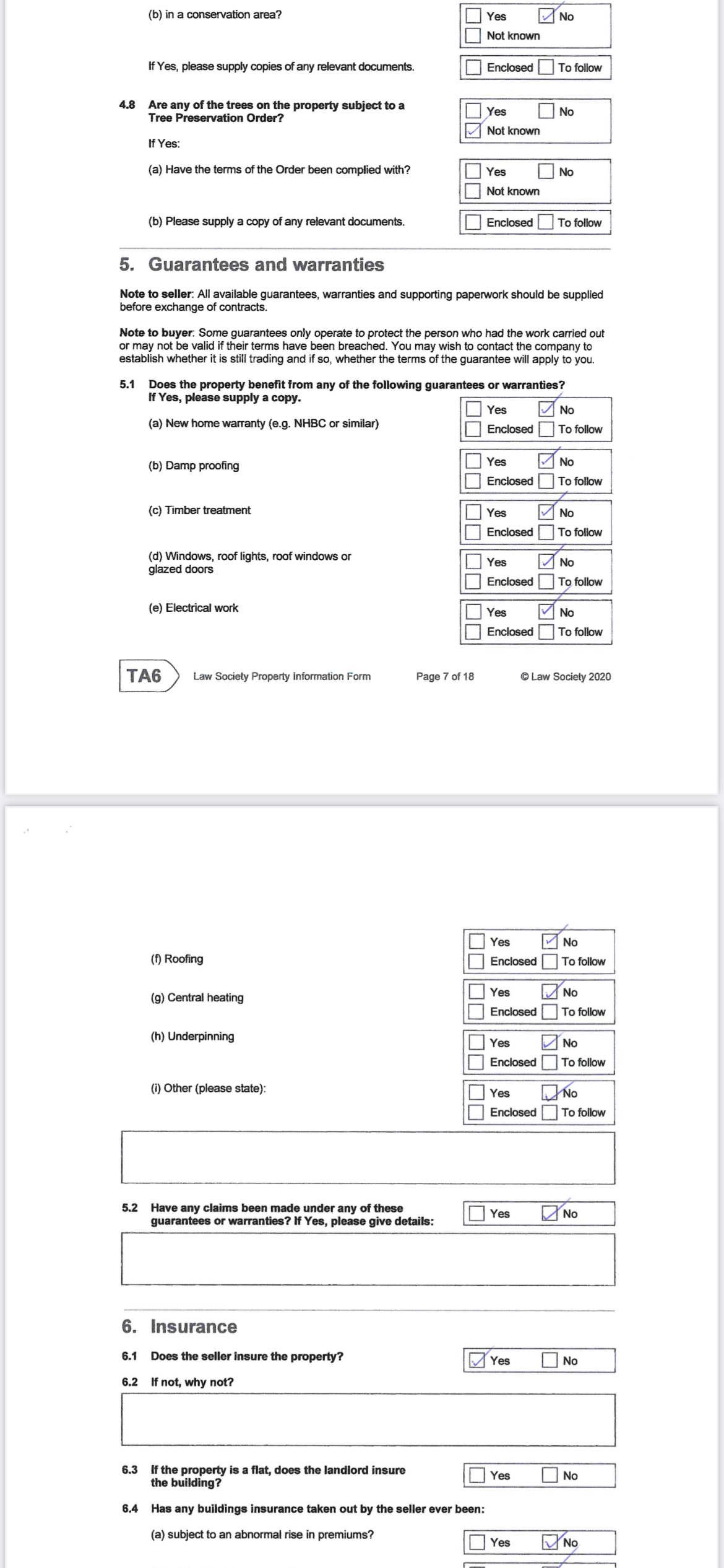 In the exchange of documents part before completion there would have been a questionnaire and within that would have been 'when was the boiler last serviced?' type of question. Do you recall how that was answered?
