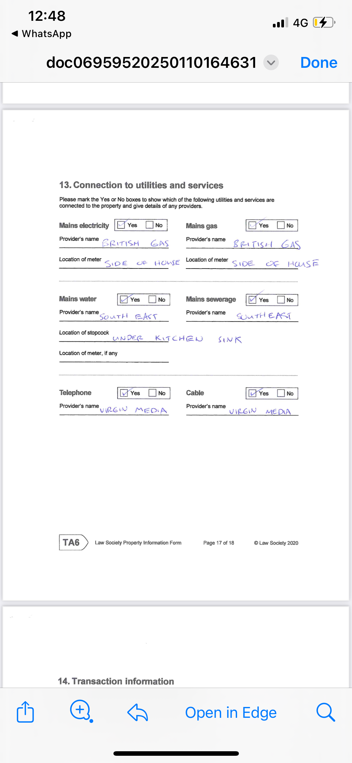 Details - British Gas Home Care covered my family members and there is cover until November 2025. British Gas agent cannot send me documentation but has confirmed over webchat (which is saved and sent over email) that the boiler was fixed November 2024 and all was working. Same agent has confirmed that the boiler was not condemned. This web chat is dated 2nd May 2025. The buyers will not share a picture of the sticker. The buyers will not talk with me - my details shared via estate agent.