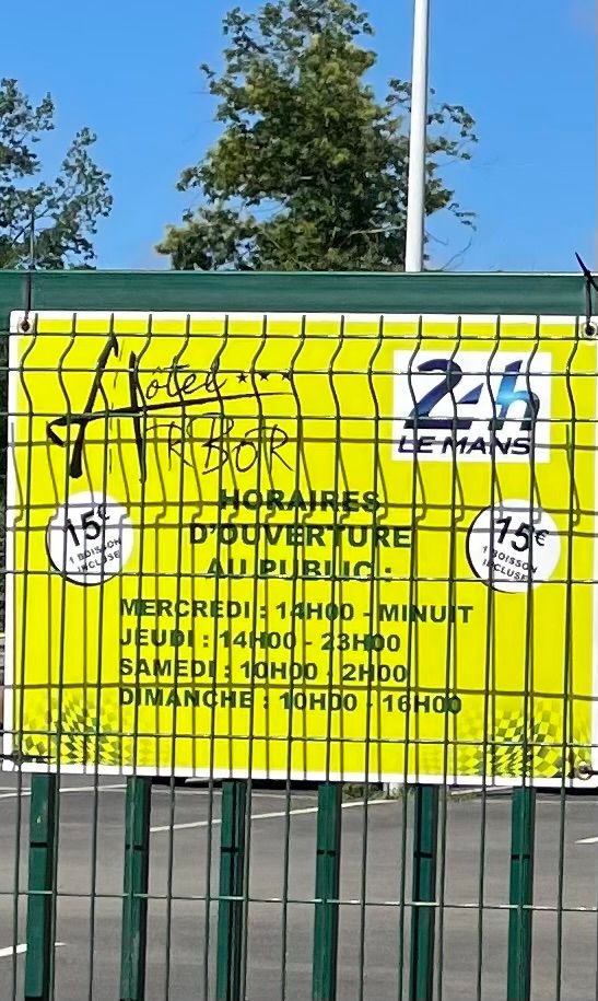 Is it just me or are a lot of things about Le Mans “not as good as they used to be”? Two problems now, price ratcheted and you only get a drink, no baguette. Worst though, access to the chicane was blocked off with waggy finger for anyone who approached.