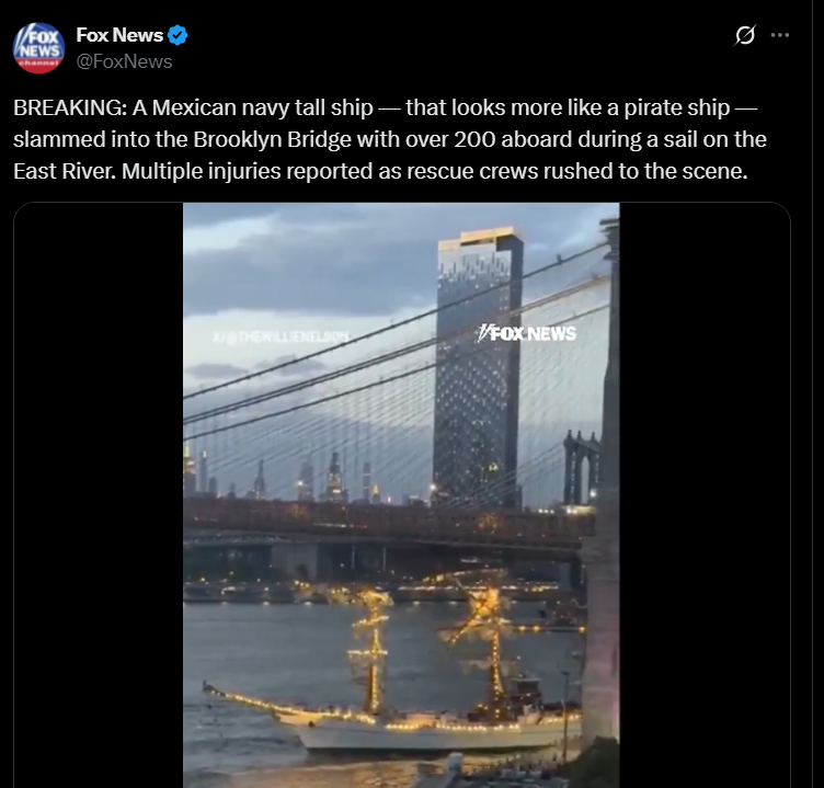 I have already seen some dumb and tasteless online 'takes' about this, boiling down to "HurrHurr...the Mexican Navy still uses sailing ships! No wonder it hit the bridge! Imagine sending a ship with sails to impress the USA on a visit!?"