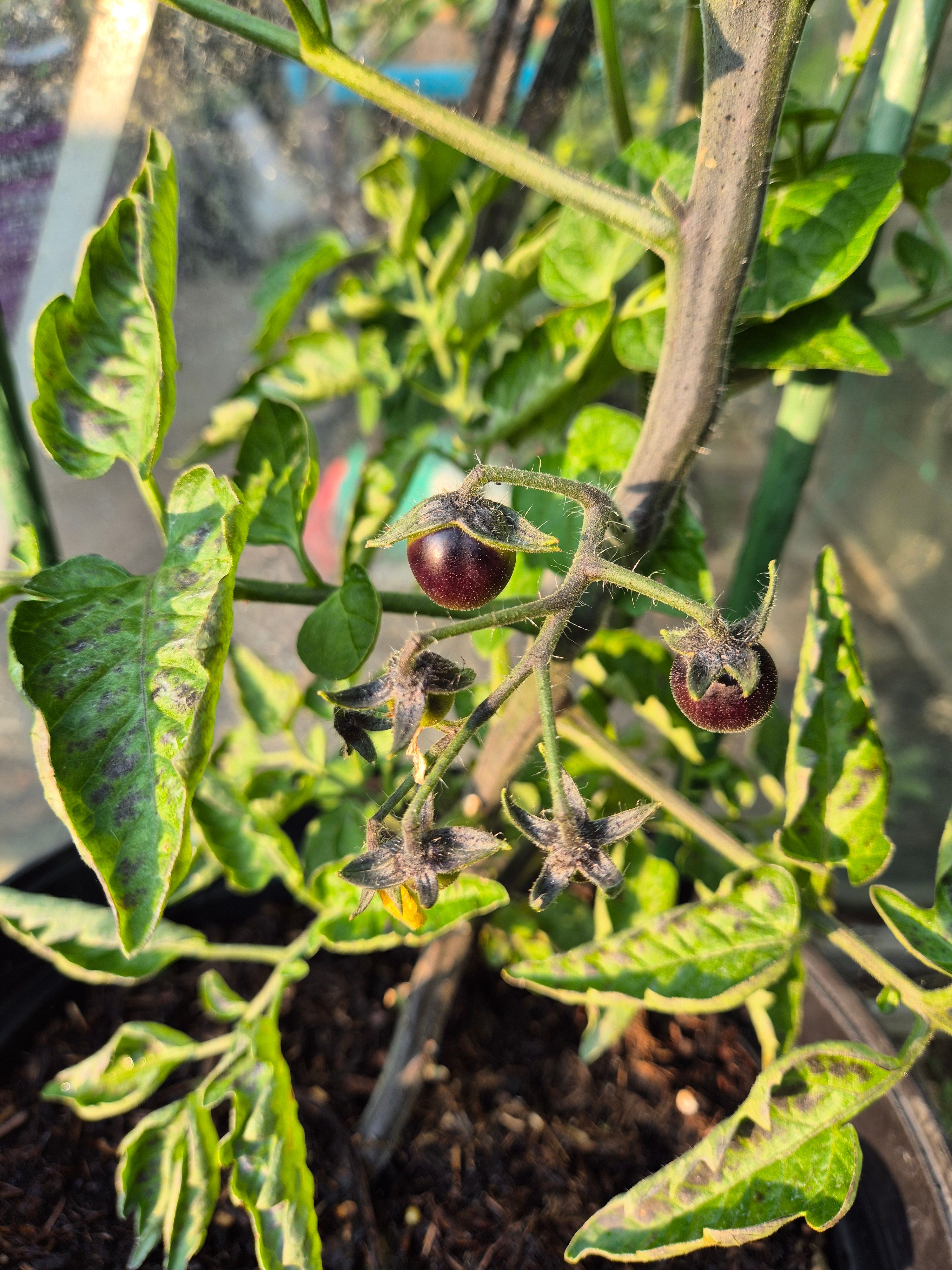 I'm trying a black tomato plant this year. It was looking healthy until a couple of days ago but now the lower leaves are curling and have black areas. The plant is outside and gets plenty of sun and shade. I water it daily, but not heavily. When you look up this sort of issue it's always the same - too much water, not enough water, too hot, too cold, a virus, a disease. They all give the same bloody end result! So what is wrong with my tomato?