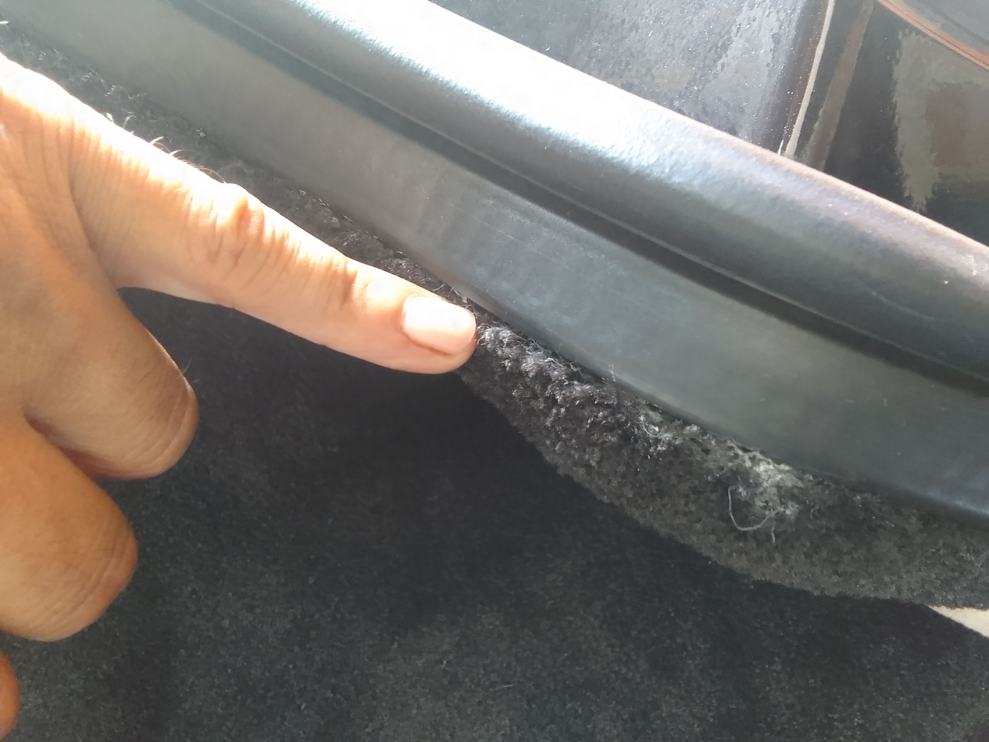 Look guys the bulb floating again. They added so much glue now I will need to remove all to have a fit....but look at the carpet too. It's right at the seal junction but it doesn't go underneath the seal it's too short.....