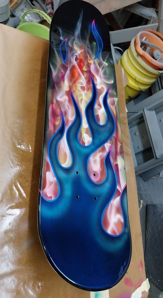 I have been developing my custom paint skills on various skate boards and crash helmets over the last couple of years and I am now bing asked to paint commissions which is a nice side hustle, here are a couple of examples