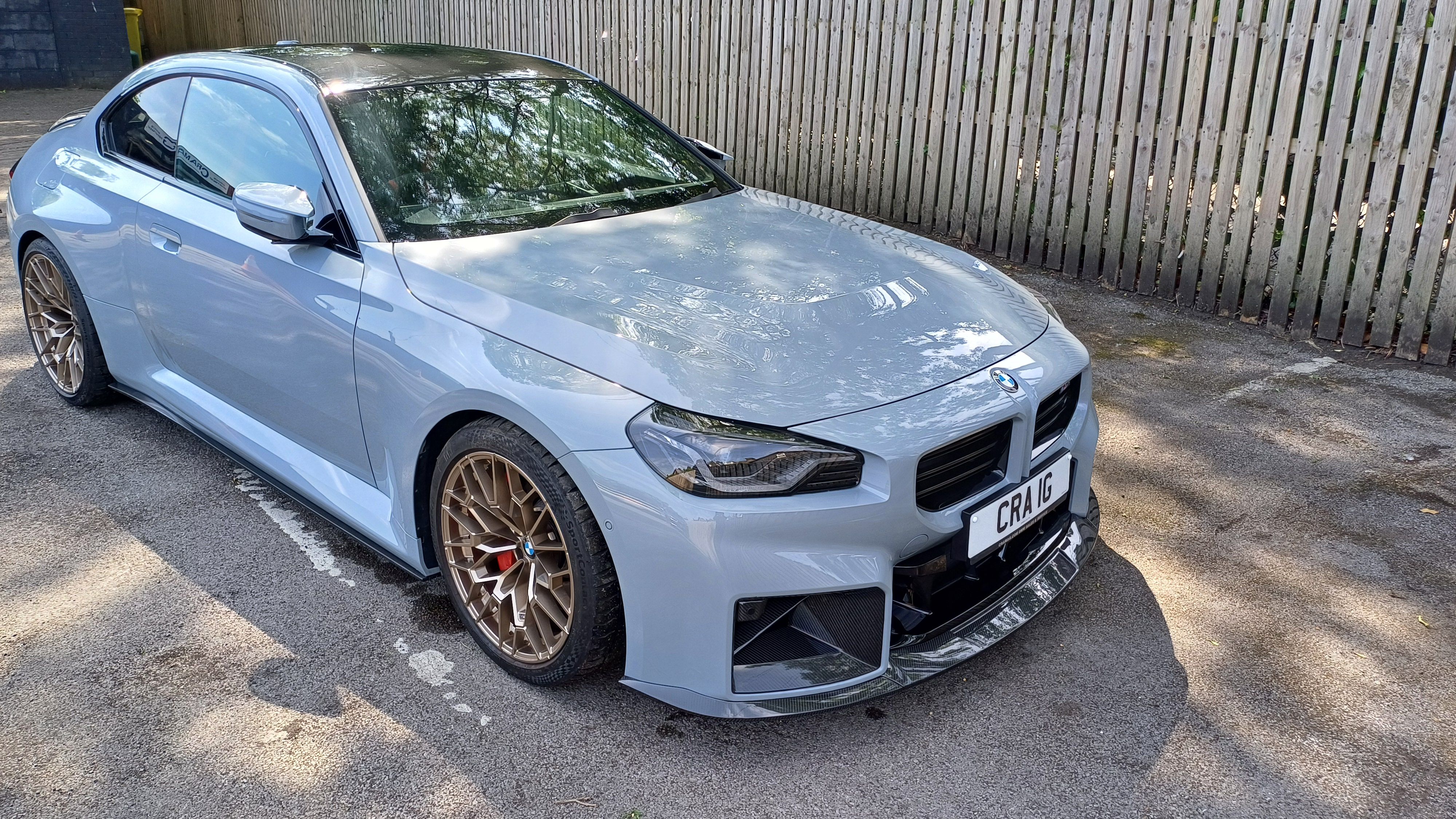 I've just upgraded my Zandvoort Blue Manual M2 and taken delivery on my New LCI 480BHP Auto... and what a difference... Genuine 827M CS Alloys, Height Adjustable M Suspension with spacers, Full TRE Carbon M Performance styling with the Alcantara S/wheel and armrest. Now had its RIS, so i can really start to play with this car...