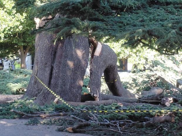 A large tree (looks like an oak) has fallen on children, killing one and injuring others
