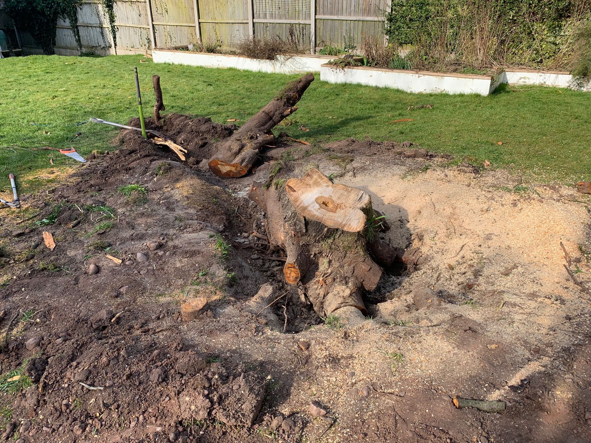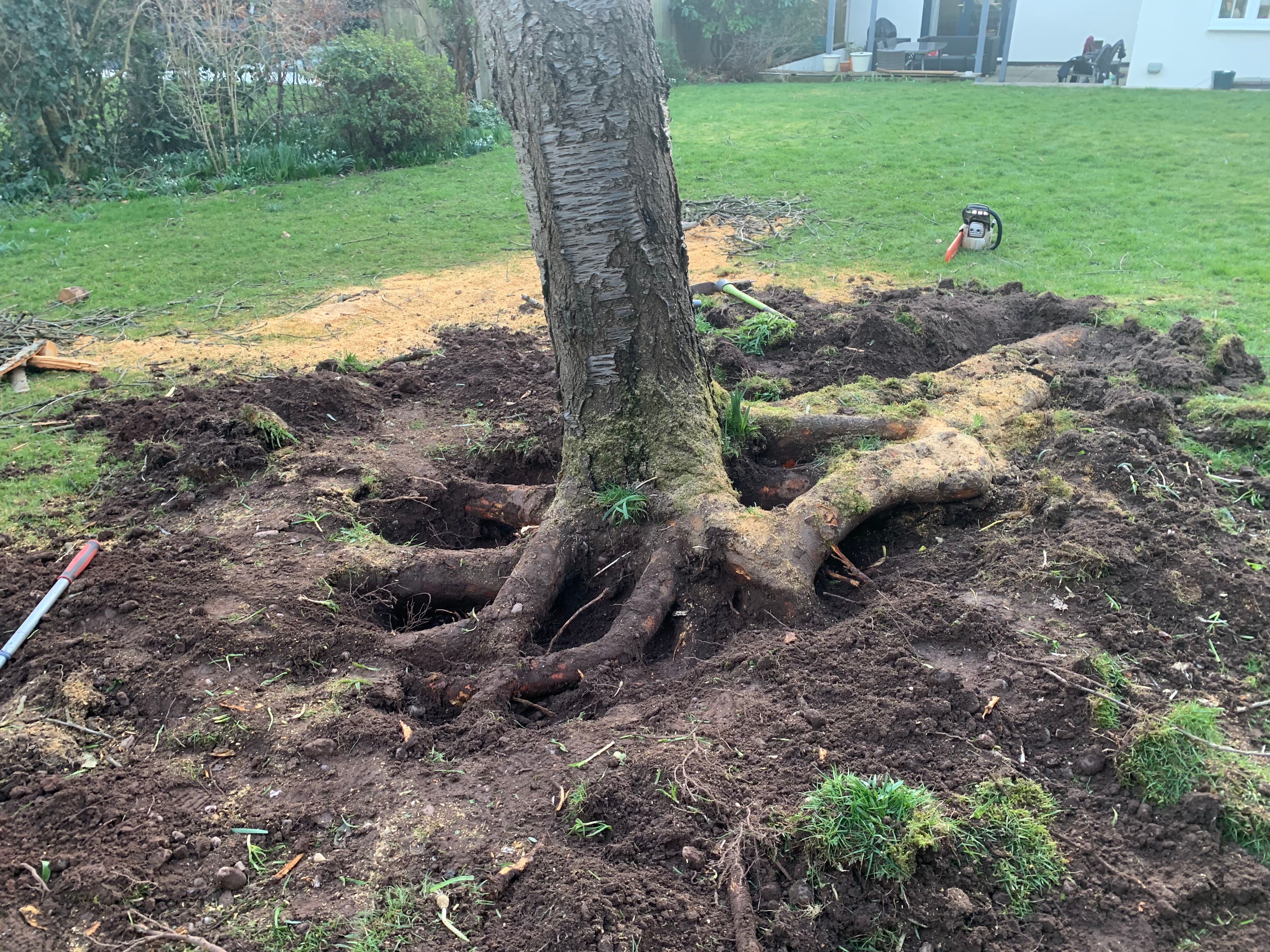 As for the trunk. I was discussing this with a workmate who it turns out has a woodburner and a chainsaw. Him and his mate are going to take the trunk for burning. No cost but they are a 40 minute drive away so I will give them a bottle of malt each.