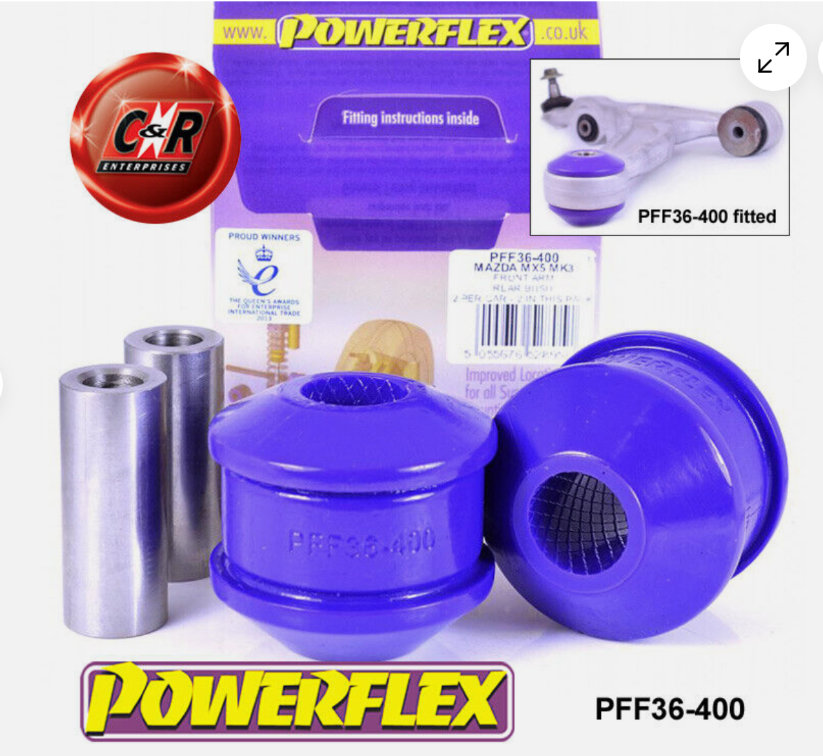 The upper control arms have two bushes on each side, I'll use power flex replacements (PFF36-403).