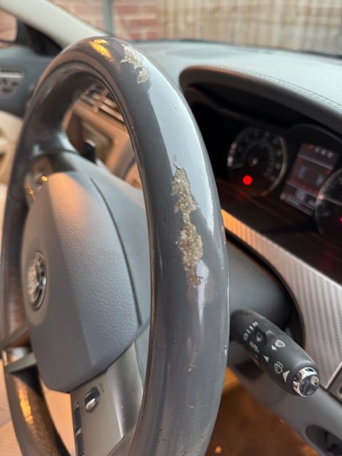 Hello to all.... the covering on the steering wheel on my 2006 XK is starting to look a little shabby. Only cosmetic I know but the rest of the interior is immaculate so would like to try and dress it rather than put a wheel cover on it. Anyone on here had a similar issue and repaired it successful/used a product they would recommend ?
