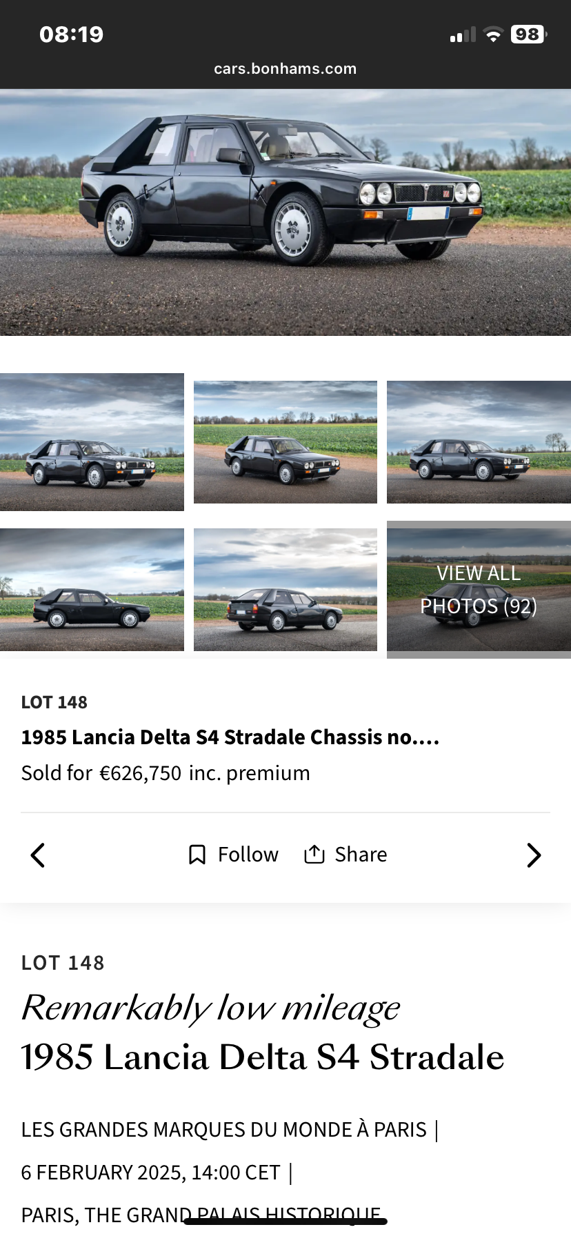 Put it like this: if the Ferrari ever made a hatchback version of the F40, it would look a little something like this. Granted, it ain’t the prettiest thing to come out of Italy, but its close ties to one of the most fearsome rally cars there has ever been make it immensely desirable. Especially the example we have here, which was delivered to the UK when new, yet has spent the last 35 years and much of its 3,500 miles in France. It’s now back on our shores, having recently been serviced by legendary Lancia specialists Elio and Giovanni Baldi in Turin, where it received a handful of engine tweaks to unlock more grunt. You’ll need to give the seller a call for the price, which will be substantial. But as Group B homologation specials go, they don’t come more special than this.