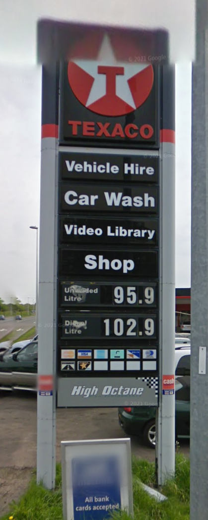 There's a petrol station on the outskirts of Chester that's just been knocked down. So with the magic of Street View, I thought I'd check the prices over the years: