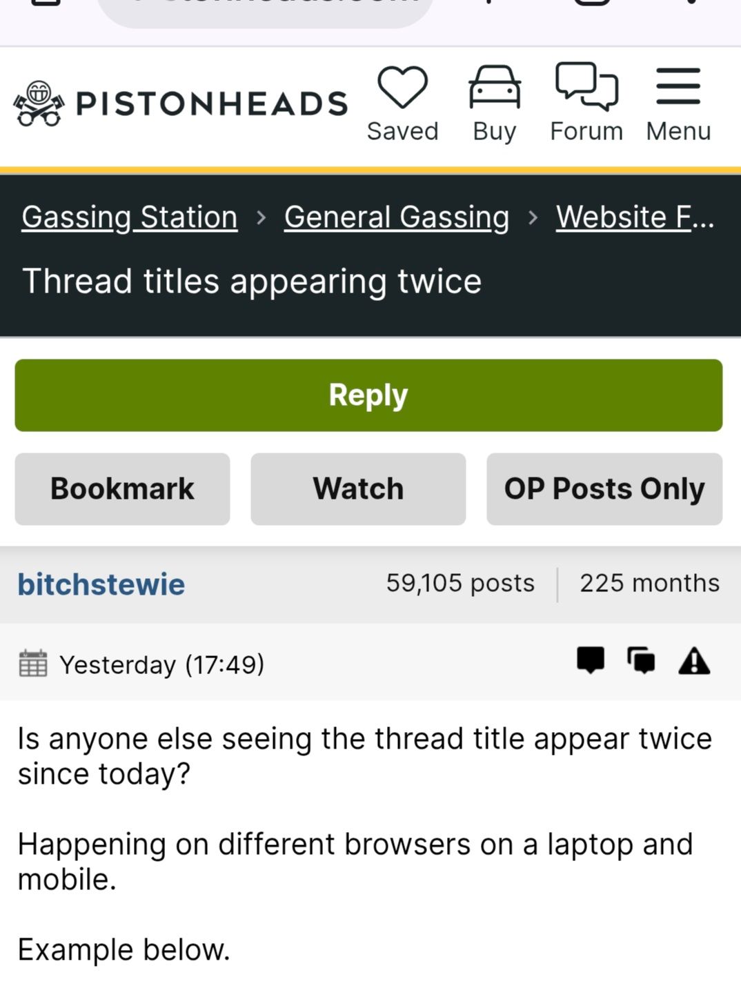 Is anyone else seeing the thread title appear twice since today?