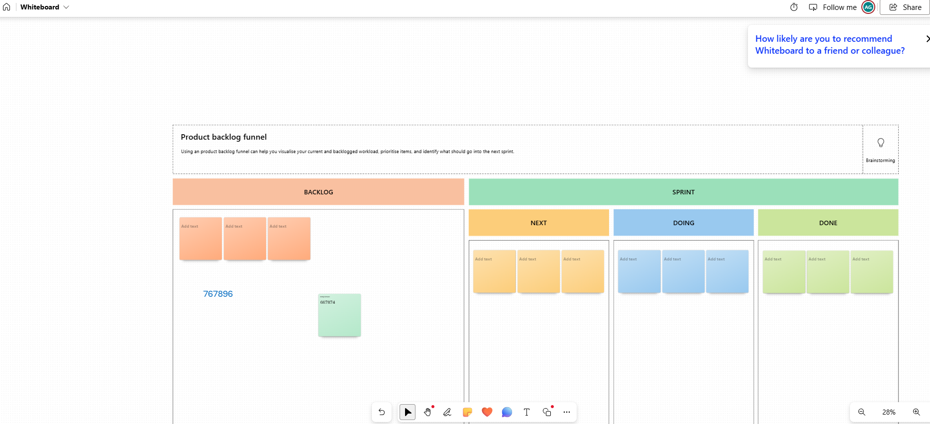 We work in the transportation industry, and we have a whiteboard split up into categories.