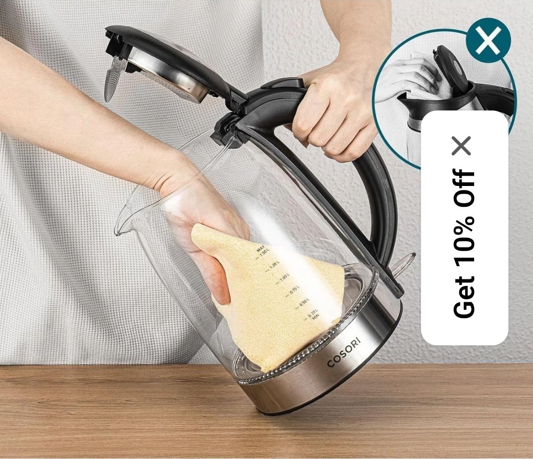 Whilst not glass... for anyone else the Ninja kettle lid opens fully and it a very good kettle, can set custom temp or use the preset 95 degs for coffee etc.