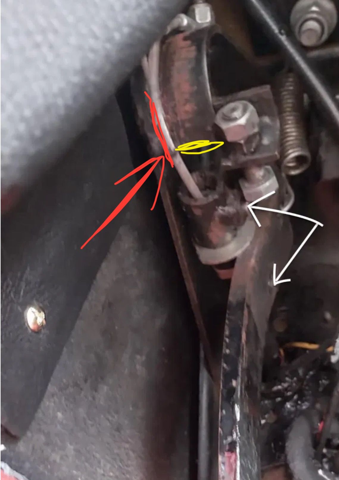 Re the cable snapping, I had this on my first wedge, if you look at the cable when the clutch pedal is pressed down, you will see the cable bends through an angle where I’ve marked in yellow. It results in snapped cables, I went through a few.
