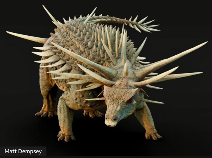 It's the earliest known form of Ankylosaur, 165m years old. Some of its spikes are 1m long, later forms had short stubby spike armour.