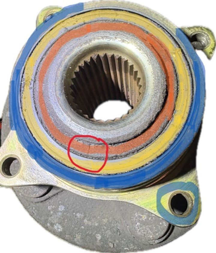 Shown below is a hub that had uncommanded acceleration with broken bearing rings.