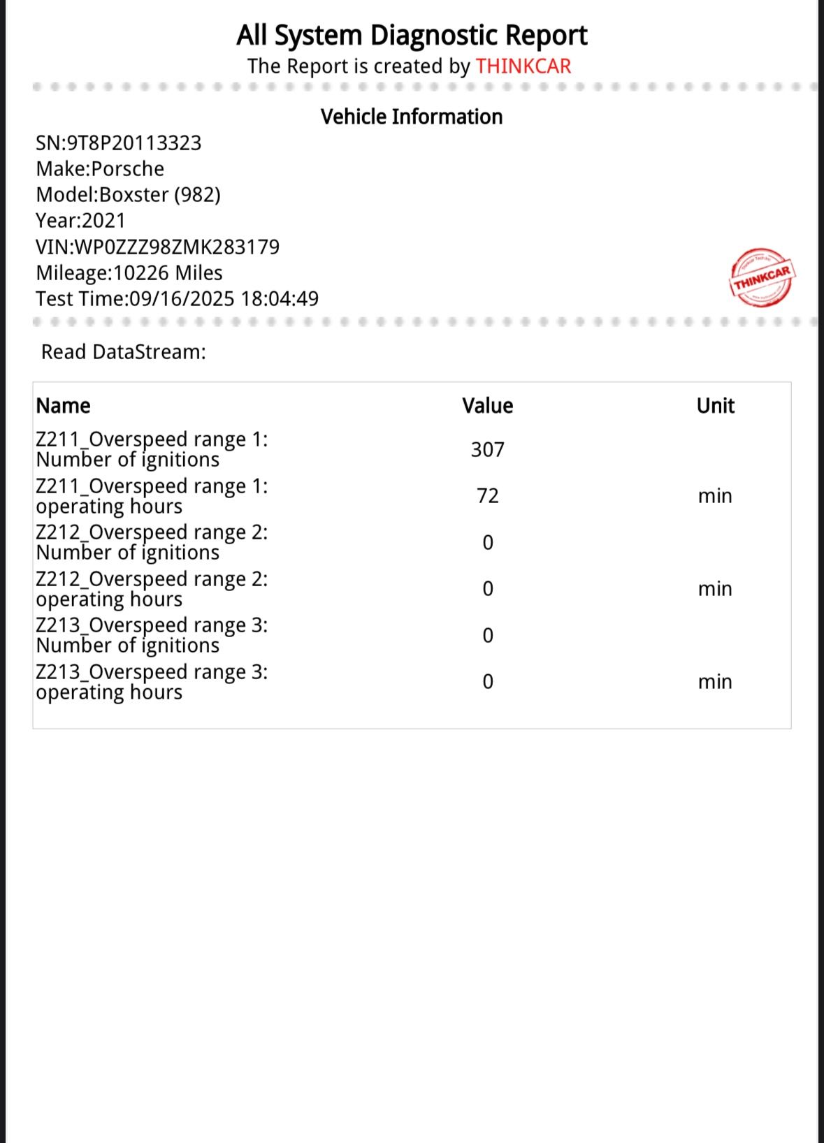 My car shows no ignition cycle or minutes in category 2 or above. So a nice clean report. Reminder, this car has been Dyno tested as part of engine calibration so most of category 1 normal higher revs will include Dyno test.